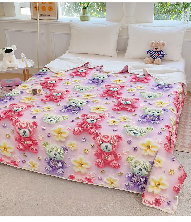 (总)默忆 2026新款直播热款5D数码凉感冰丝夏被,粉色毛线熊,幻影熊宝,凯特熊紫,可爱宝宝熊,可爱熊猫,蓝黄熊宝,蓝色小兔,萝卜兔,向阳花,小飞马