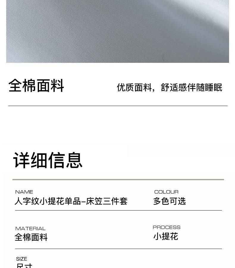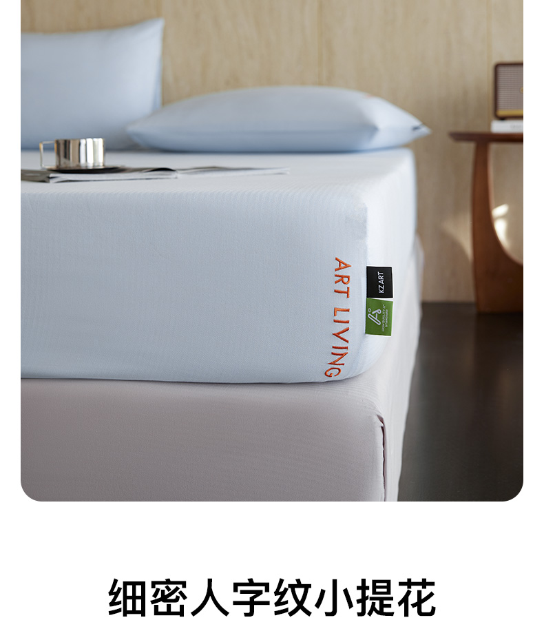 当前位置: 91家纺网 > 商品网购 > 床品套件 > 三件套 > 卡姿家纺 2026春夏全棉人字纹小提花单品-床笠三件套 床笠-浅蓝