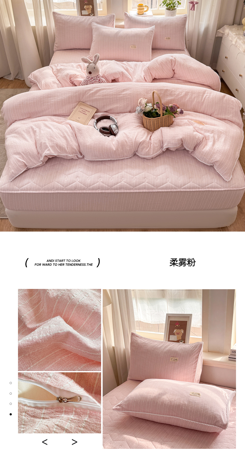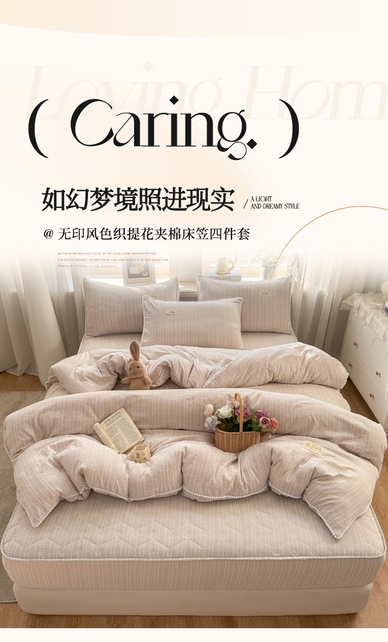 当前位置: 91家纺网 > 商品网购 > 床品套件 > 四件套 > 色织四件套 > 蝶帕家纺 2026新款无印色织提花加棉床笠四件套 浅灰