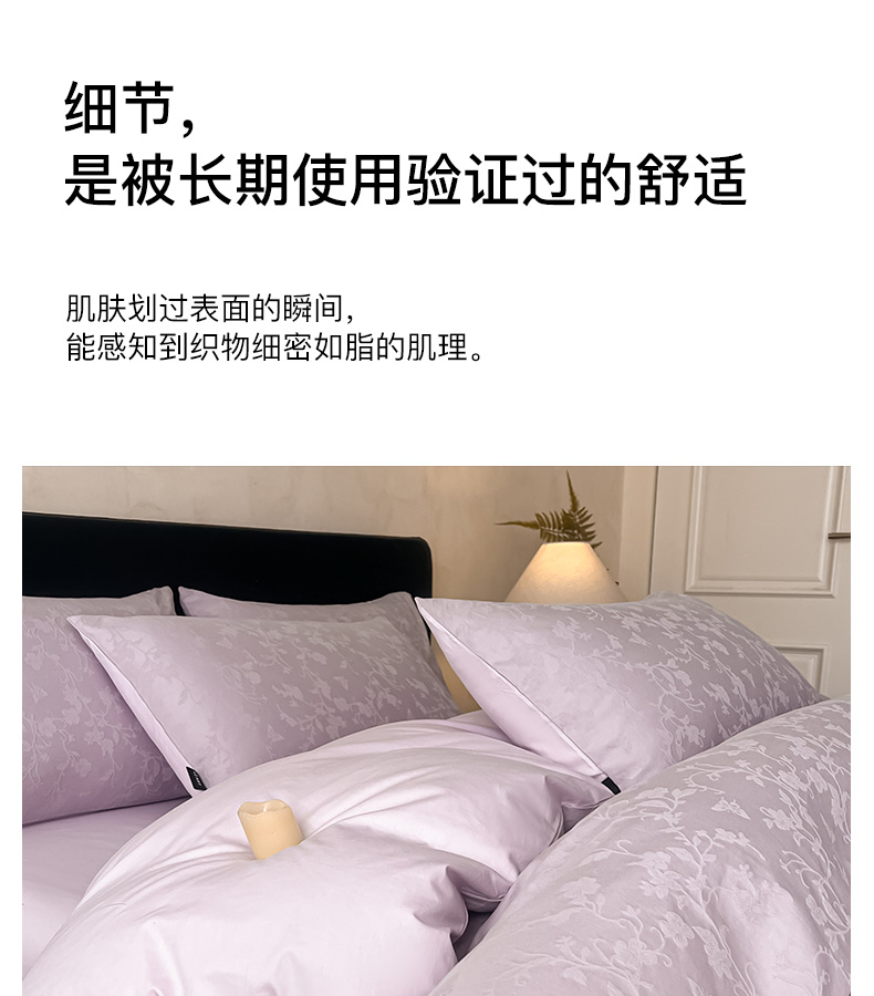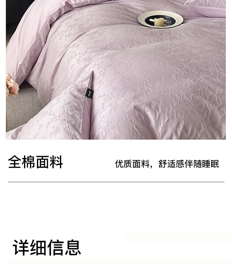 商品名称:卡姿家纺 2026春夏全棉高密厚织大提花轻奢四件套 露柯-丁香紫