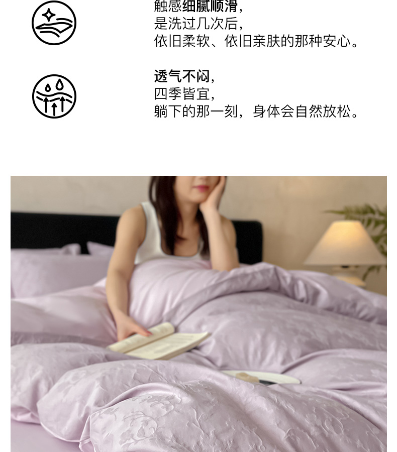 卡姿家纺 2026春夏全棉高密厚织大提花轻奢四件套 露柯-丁香紫