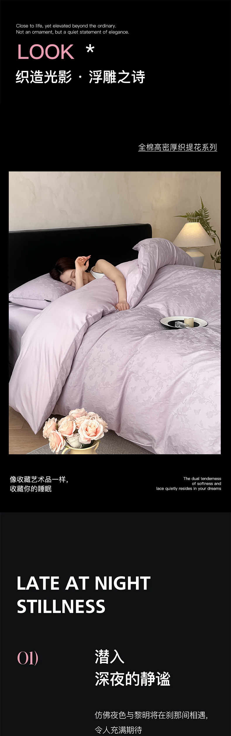 (总)卡姿家纺 2026春夏全棉高密厚织大提花轻奢四件套,花香韵美-淡雅紫,花样甜心-奶白,焦野-奶绿,克拉拉-香槟驼,浪漫情缘-粉,露柯-丁香紫,沁香-湖绿,柔风香草-奶白,石烁-奶白,腰果素绘-香槟驼,伊贝卡-银灰