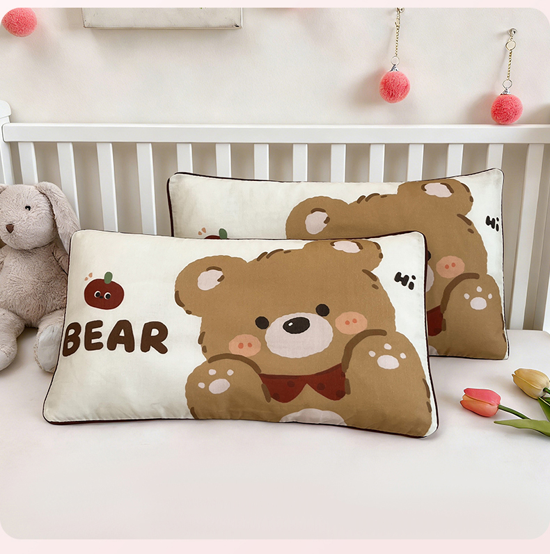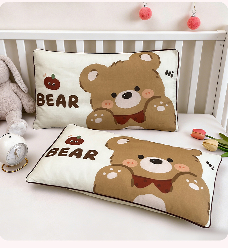 商品名称:雯豆家纺 2026新款全棉双层纱布枕套儿童卡通枕芯定位纯棉大版枕头套 双层纱-快乐熊