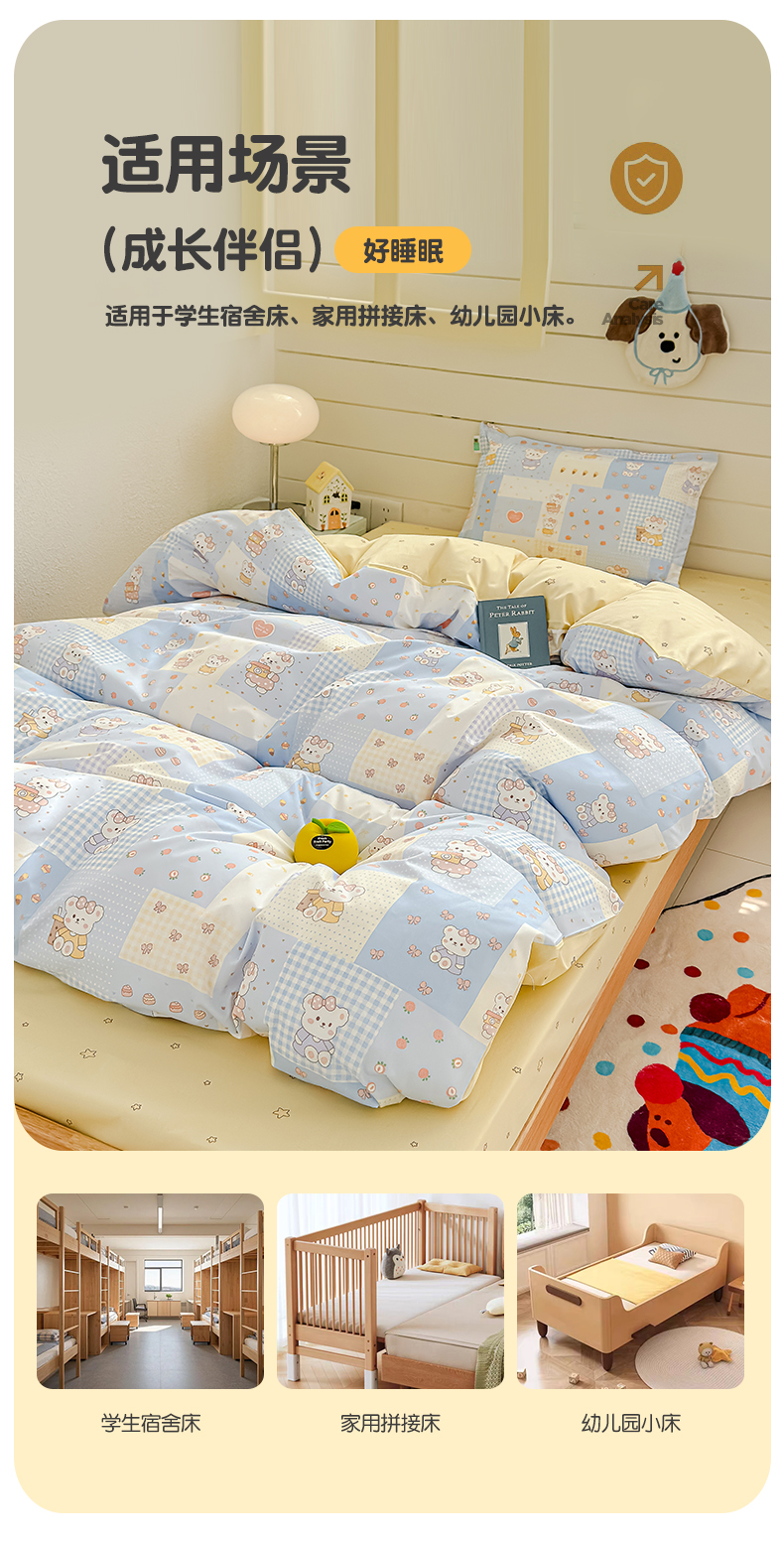(总)良佐生活 2026年新款A类铂金精梳全棉学生三件套,甜心熊,挖机小分队,调皮象,福宝,乐兔粉,布布,太空探险,乐兔蓝