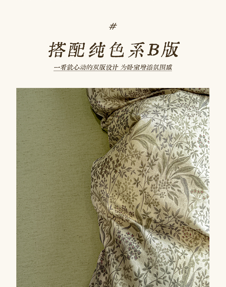 (总)忆生活家纺 2026新款复古田园风棉麻四件套,组合图仅供展示,奶茶兔,初夏-绿,花颜-粉,林夕-绿,绿野,绿茵-绿,墨染,趣味小象,素影,夕颜,悠然-红,知夏-咖
