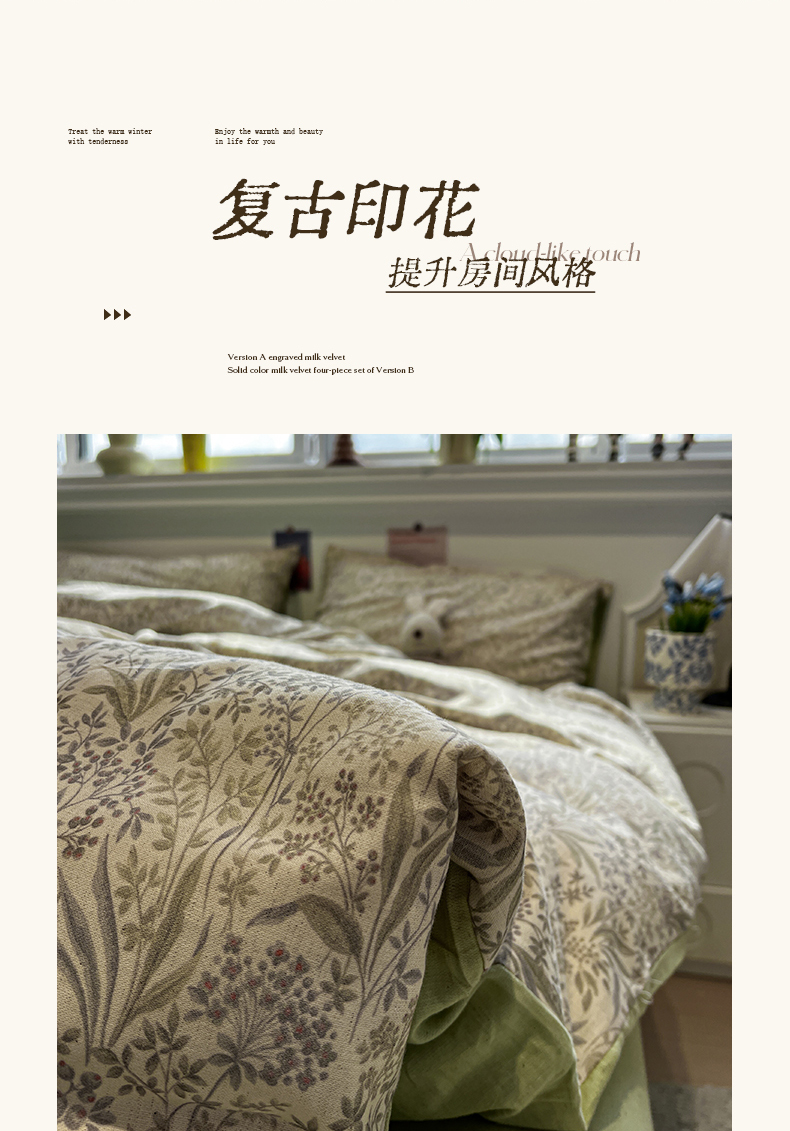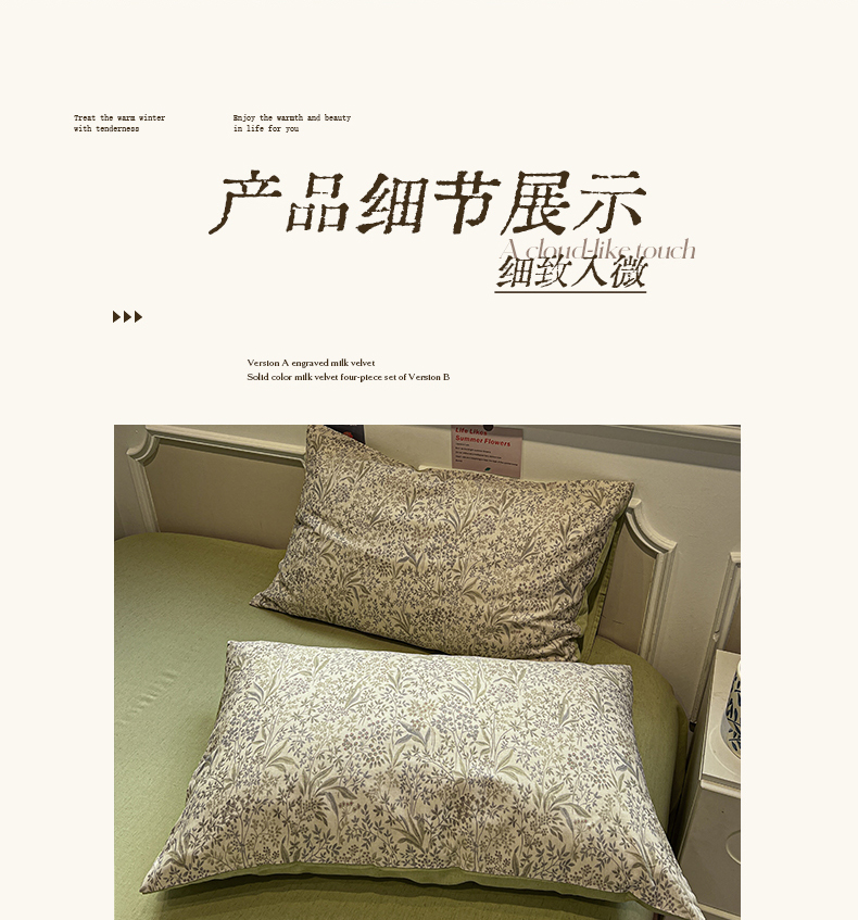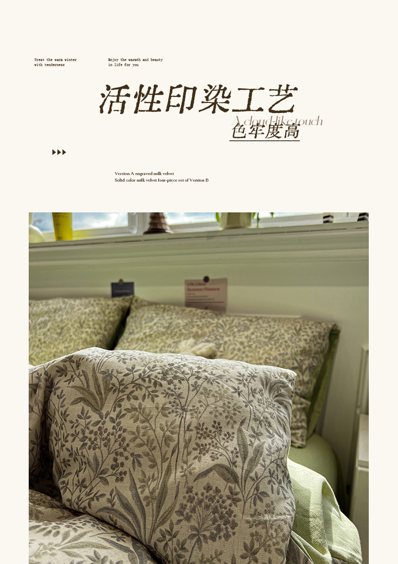 (总)忆生活家纺 2025秋冬韩版公主风雕花牛奶绒四件套-小香茶花系列,小香茶花-秋绿,小香茶花-象牙白