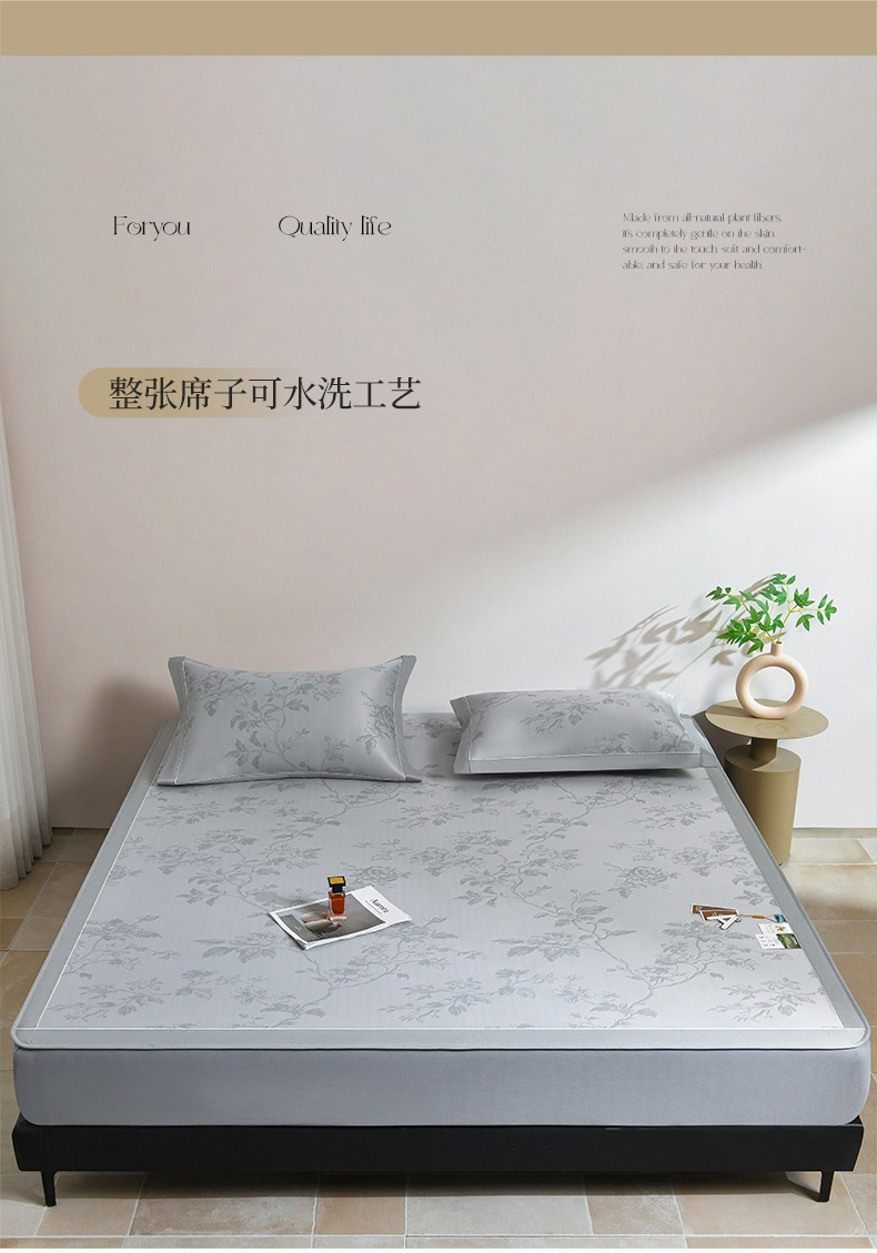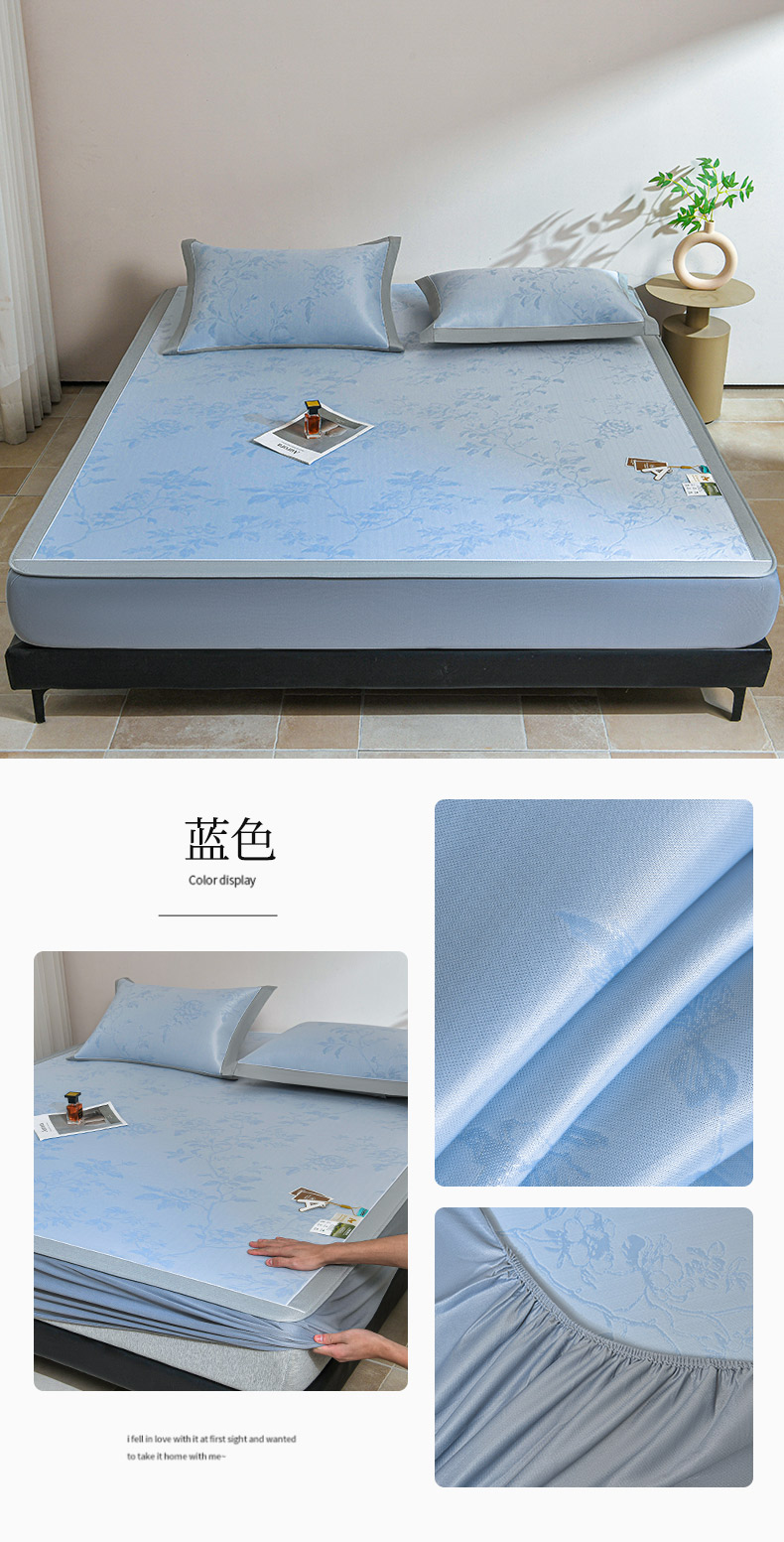 (总)2023新款超精密冰丝席-小斜纹系列-床笠款藤席凉席竹席,粉色,蓝色,绿色,银灰
