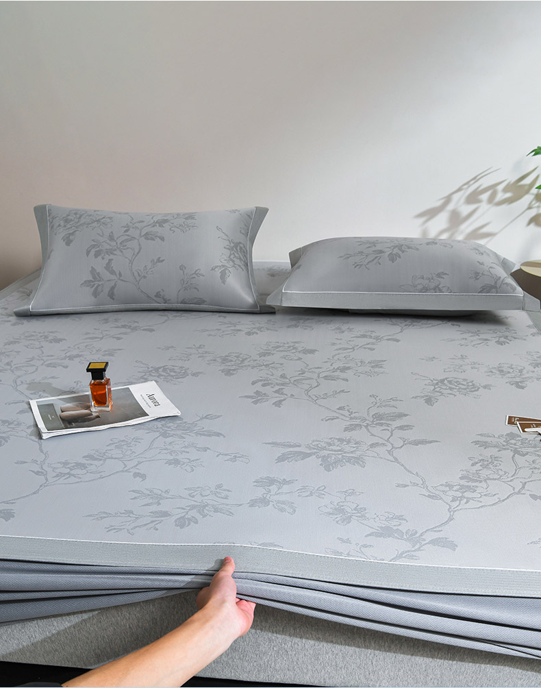 (总)小牛席业 2026新款【实拍风格】双PE高凉感-迪恩玫瑰提花冰丝席(床笠款)凉席竹席藤席冰藤席乳胶席豆豆席,粉色,灰色,蓝色,香槟