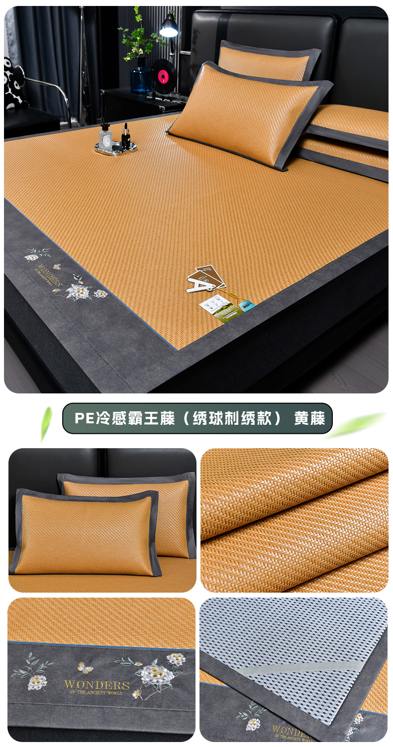 当前位置: 91家纺网 > 商品网购 > 床上用品 > 凉席 > 藤席 > 小牛席业 2026新款PE冷感霸王藤系列(绣球花开刺绣款)凉席藤席冰藤席冰丝席可机洗凉感冰丝席豆豆席PE霸王藤 蓝色