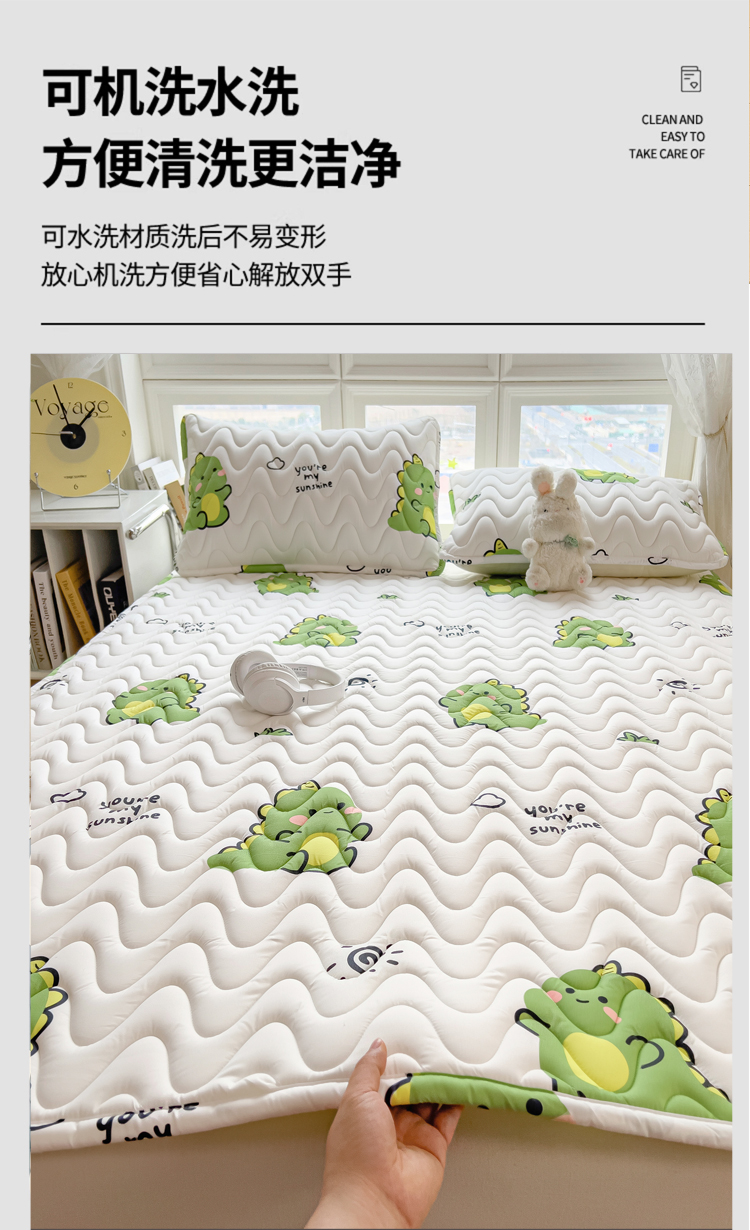 (总)希廷顿 2026新款印花夹棉防水床垫学生款,小恐龙,梦幻森林,小煤球,太空人,luck熊,萌宠狗,马上暴富,草莓熊,星星犬,熊本熊,熊猫攀竹,云之恋