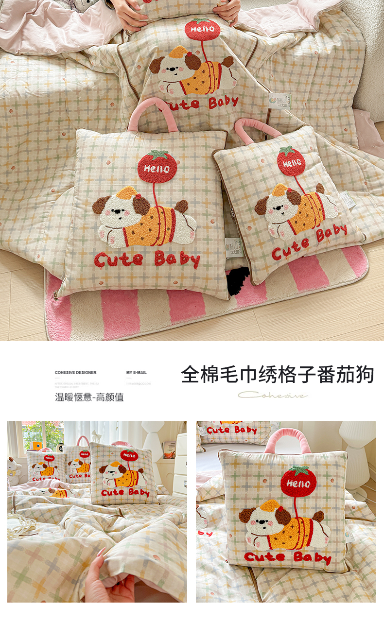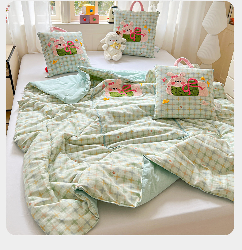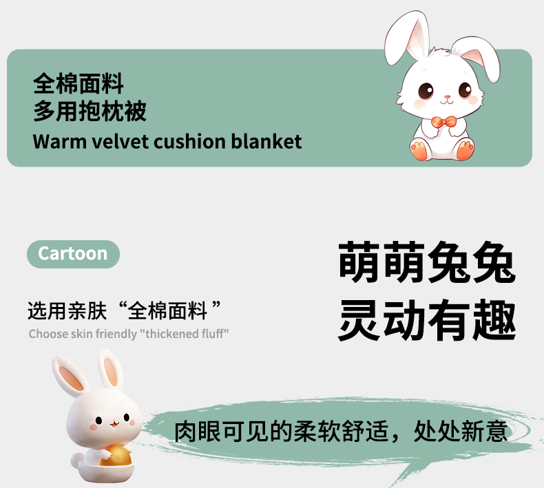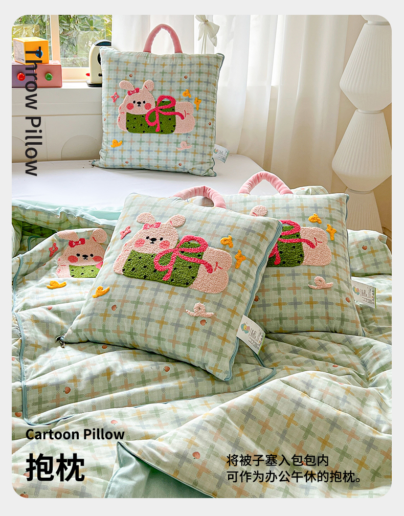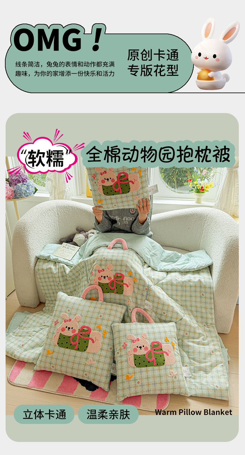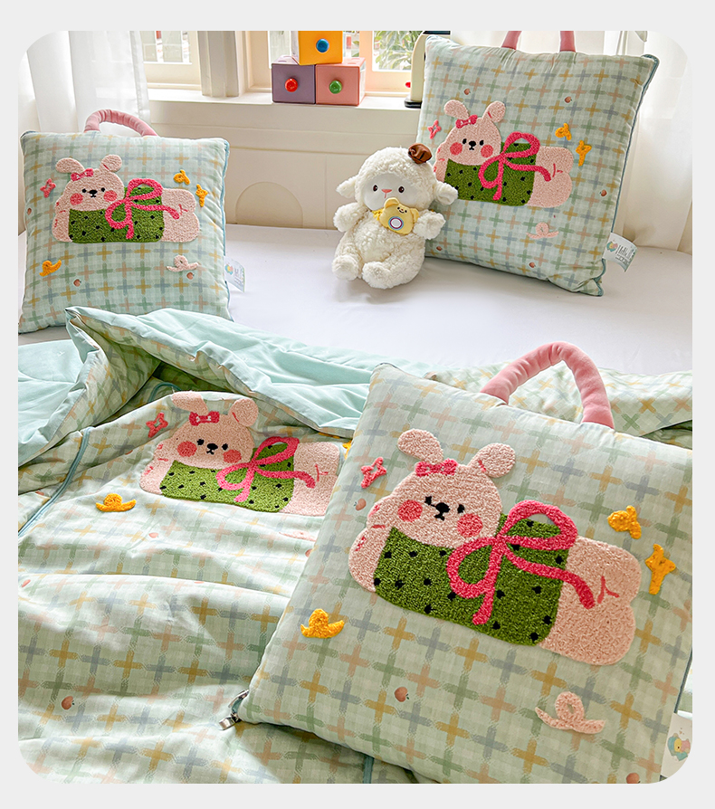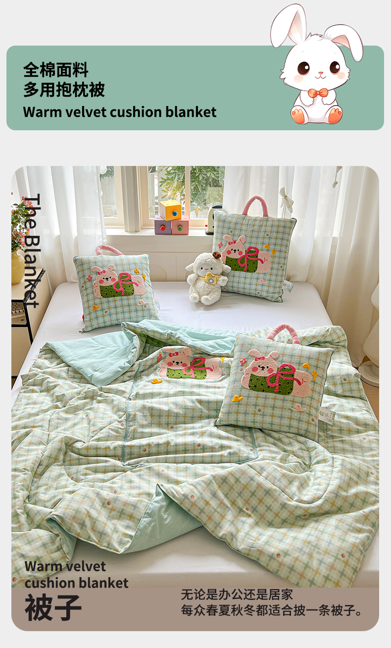 当前位置: 91家纺网 > 商品网购 > 居家日用 > 靠垫/抱枕 > 古本家居 2026新款全棉毛巾绣动物园抱枕被系列 全棉毛巾绣格子蝴蝶兔