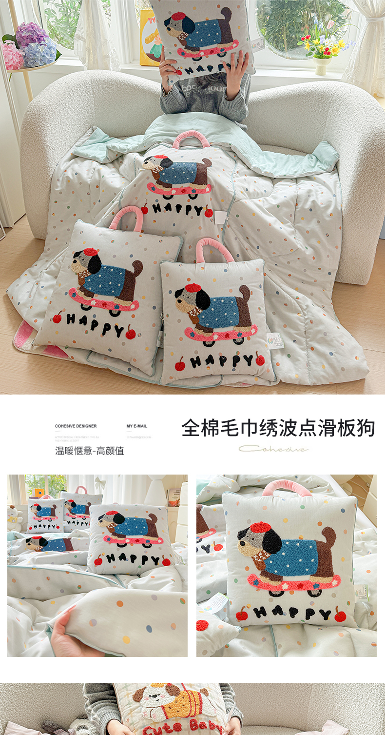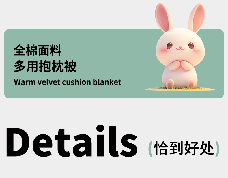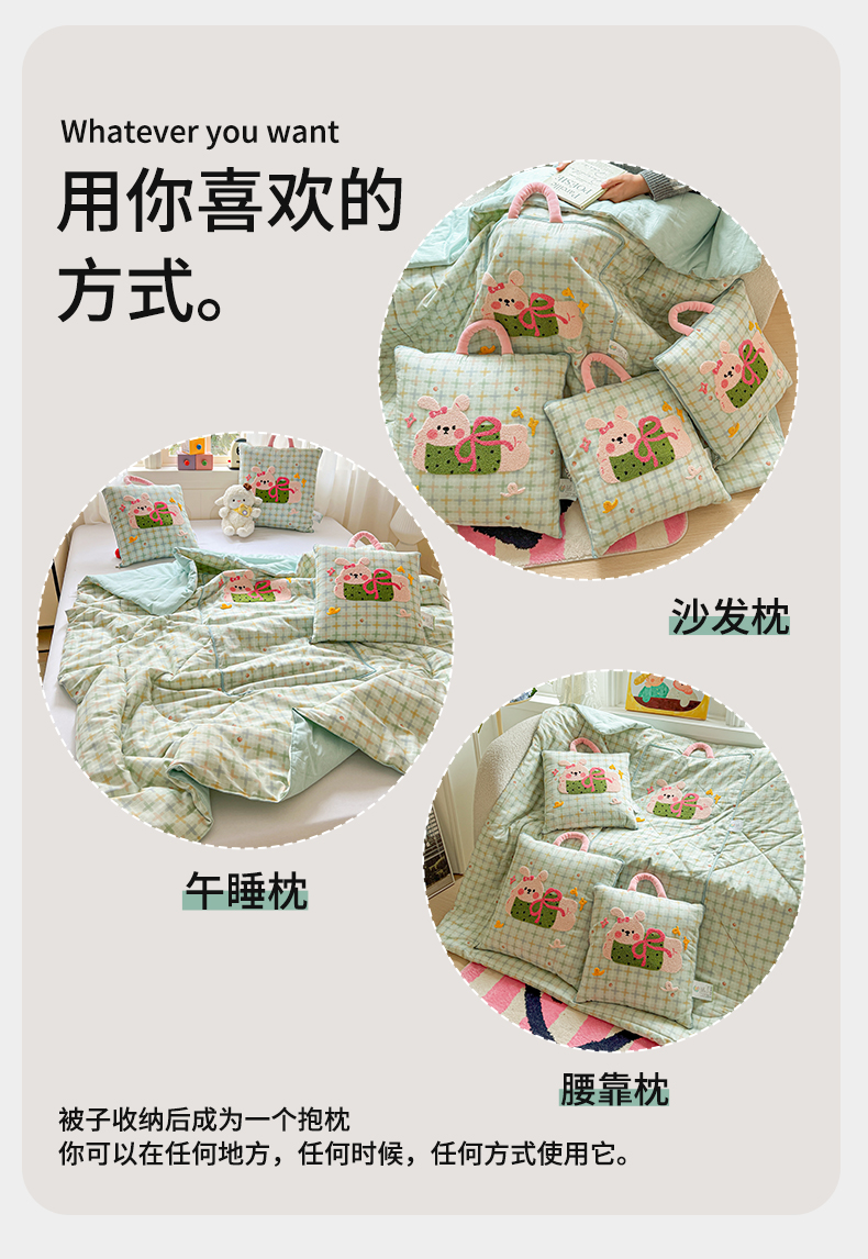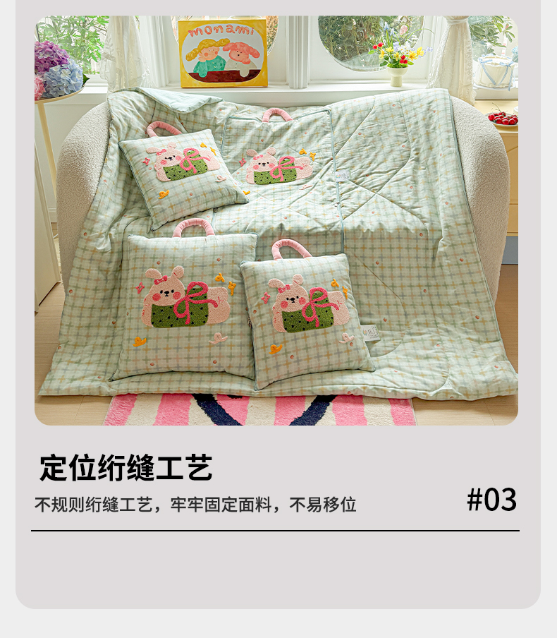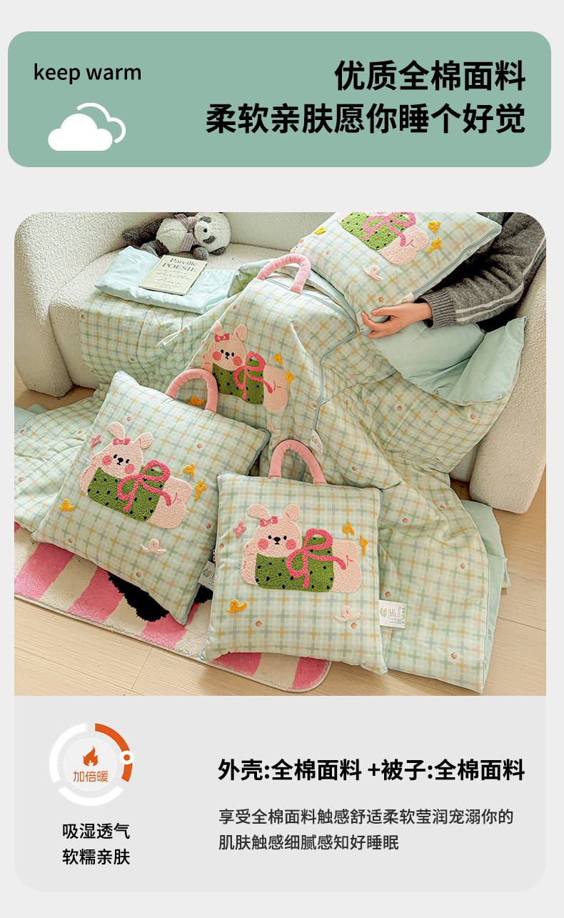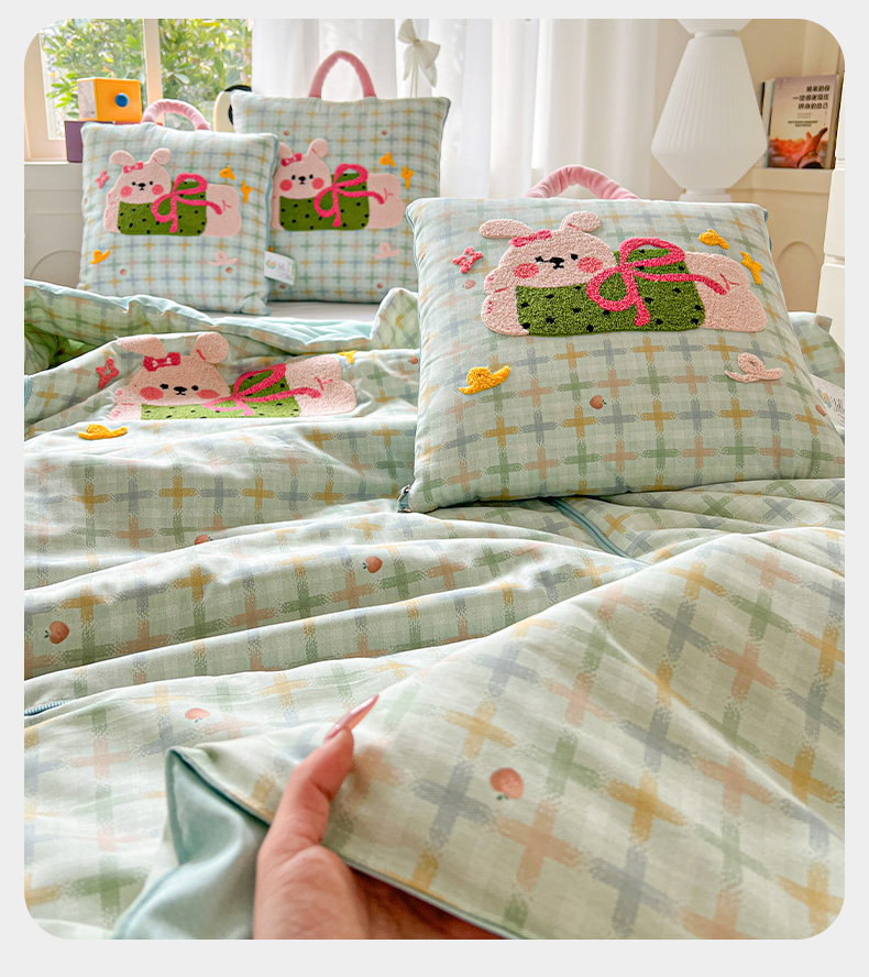 当前位置: 91家纺网 > 商品网购 > 居家日用 > 靠垫/抱枕 > 古本家居 2026新款全棉毛巾绣动物园抱枕被系列 全棉毛巾绣格子蝴蝶兔