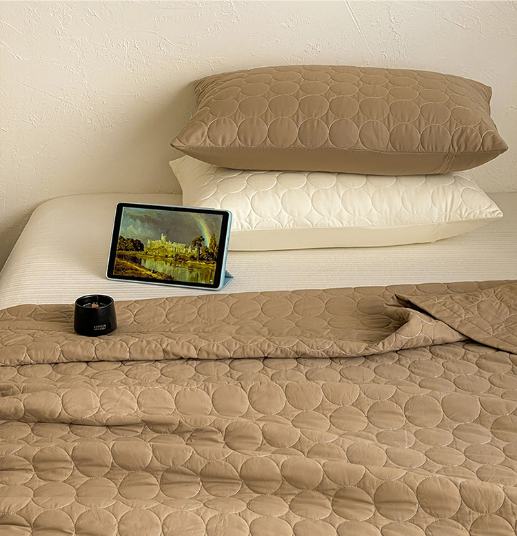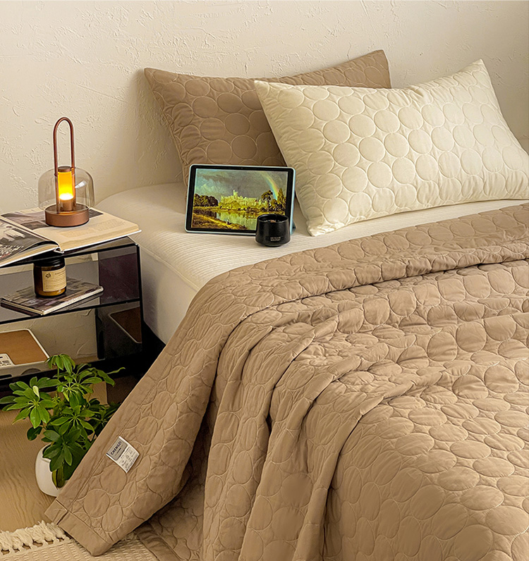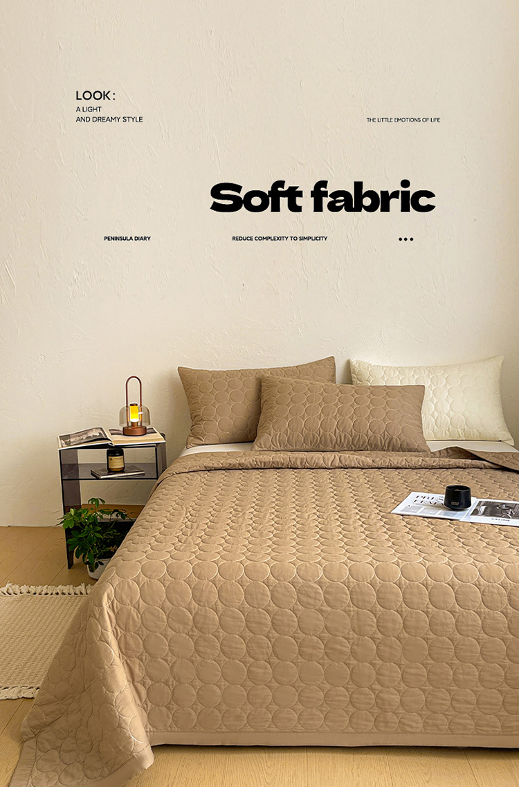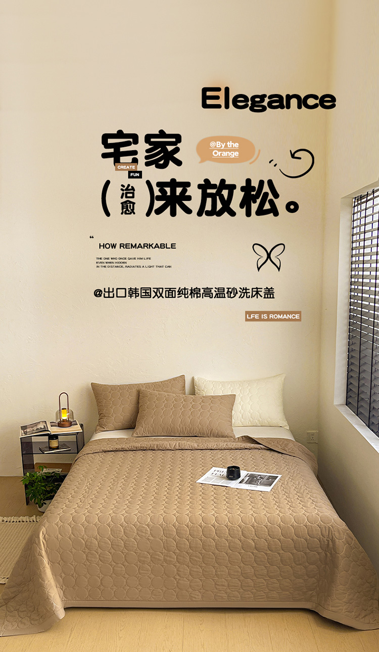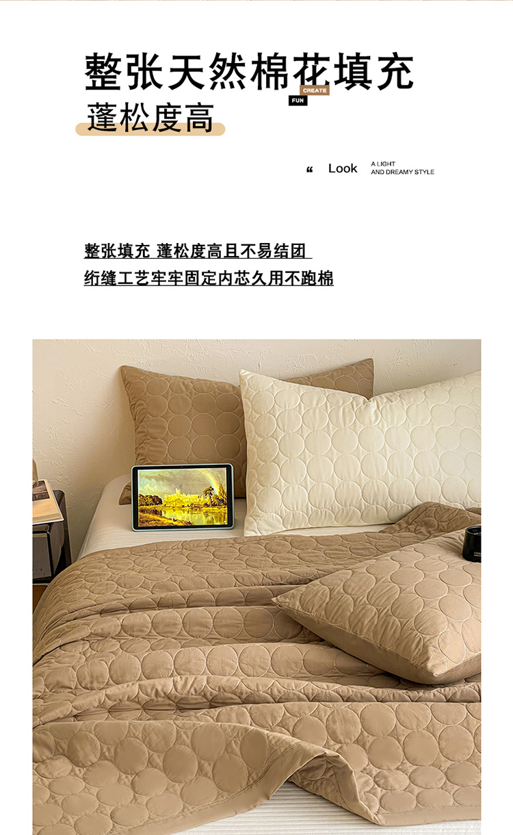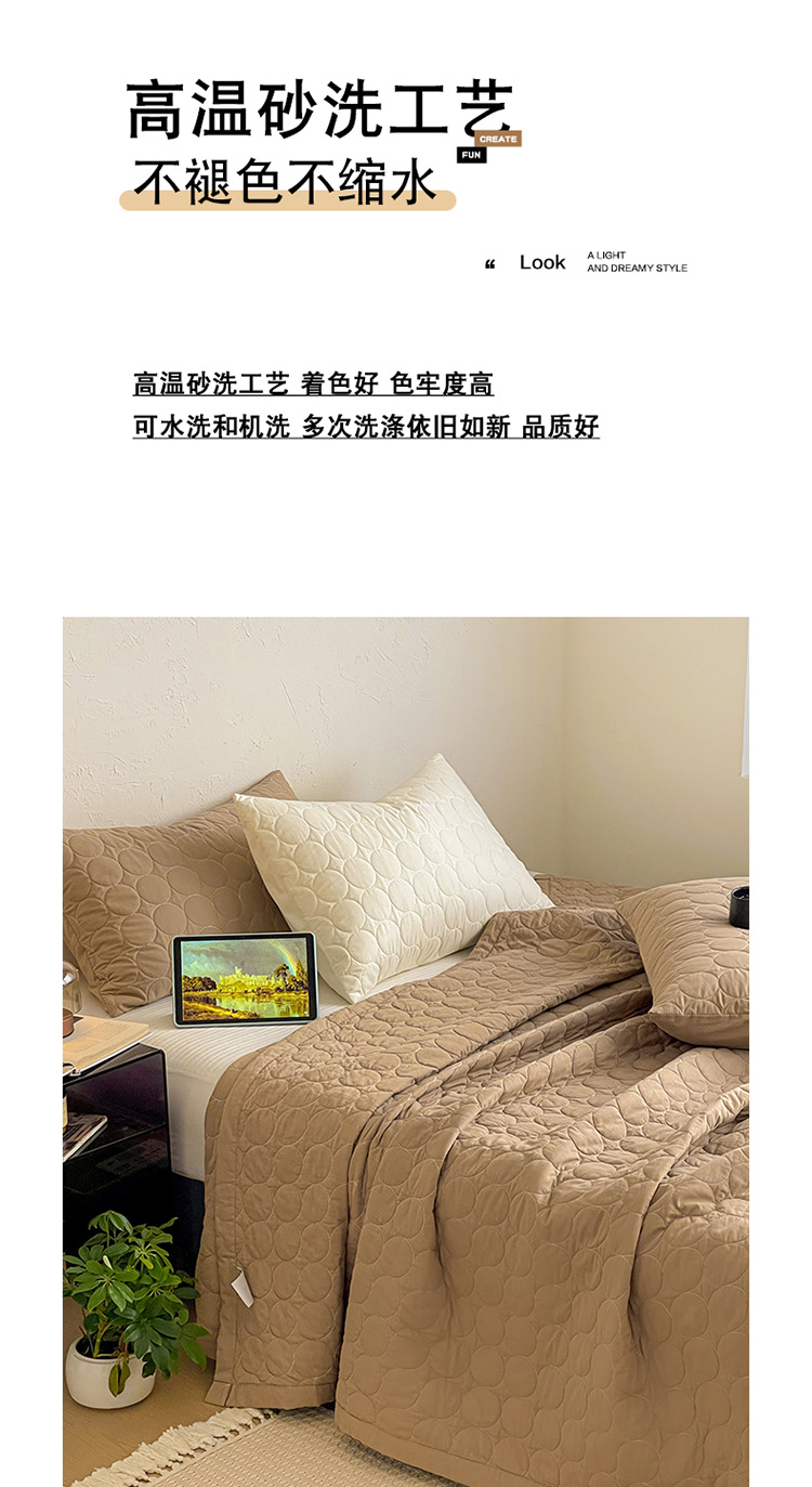 商品名称:橙子家居 2026年新款韩系云朵泡芙纯色水洗棉花床盖三件套 云朵泡芙-焦糖色