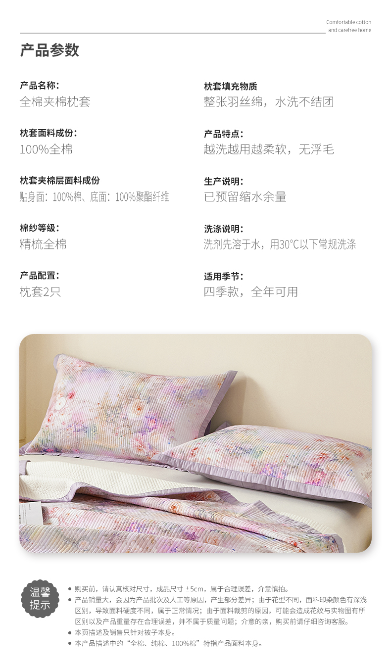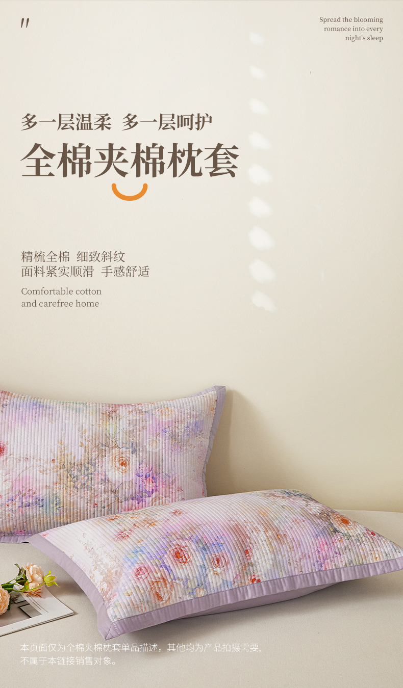 商品名称:元元家居(元元被业) 2026新款全棉纯棉13372系列夹棉枕套单件枕套单品单枕套-印花款 红颜