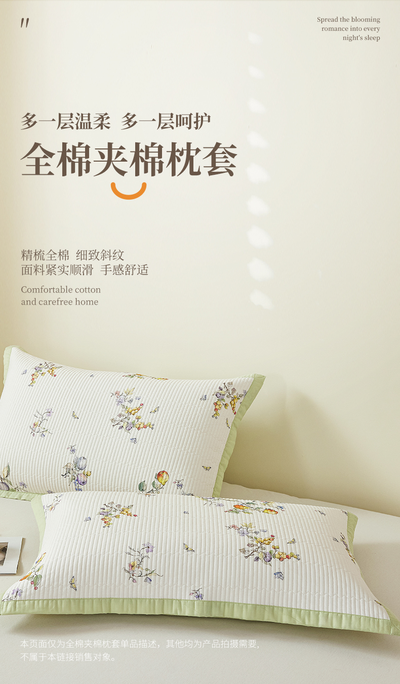 (总)元元家居(元元被业) 2026新款全棉纯棉13372系列夹棉枕套单件枕套单品单枕套-印花款,春晓绿,春晓米,芳菲,红颜,花漾绿,花漾紫,惊艳,乐园粉,乐园绿,凝珠,闪亮,思思,有枝,月棠,云樾,知夏