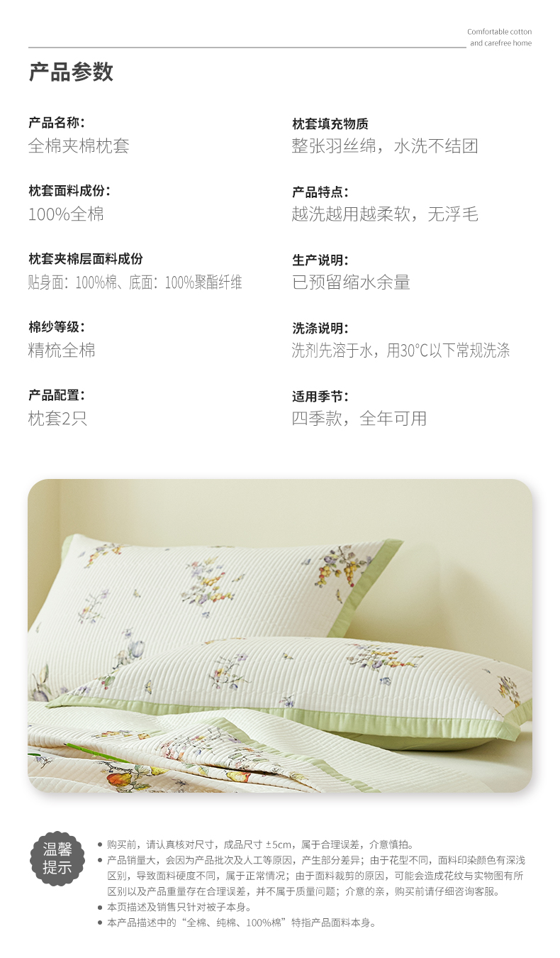 商品名称:元元家居(元元被业) 2026新款全棉纯棉13372系列夹棉枕套单件枕套单品单枕套-印花款 知夏