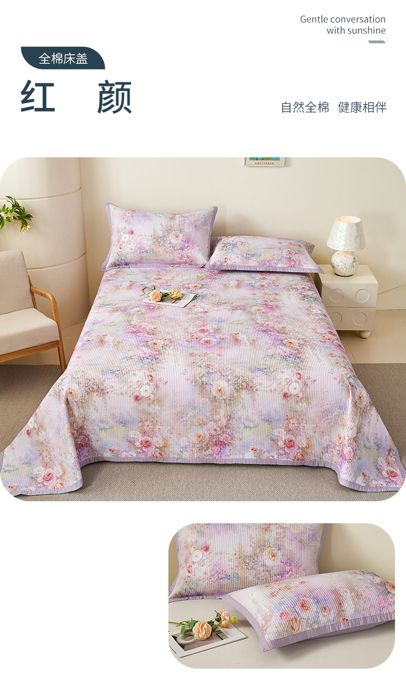 (总)元元家居(元元被业) 2026新款全棉纯棉13372系列床盖单件床盖单品单床盖-印花款,春晓绿,春晓米,芳菲,红颜,花漾绿,花漾紫,惊艳,乐园粉,乐园绿,凝珠,闪亮,思思,有枝,月棠,云樾,知夏
