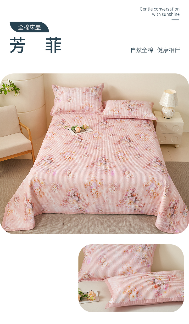 元元家居(元元被业) 2026新款全棉纯棉13372系列床盖单件床盖单品单床盖-印花款 乐园粉