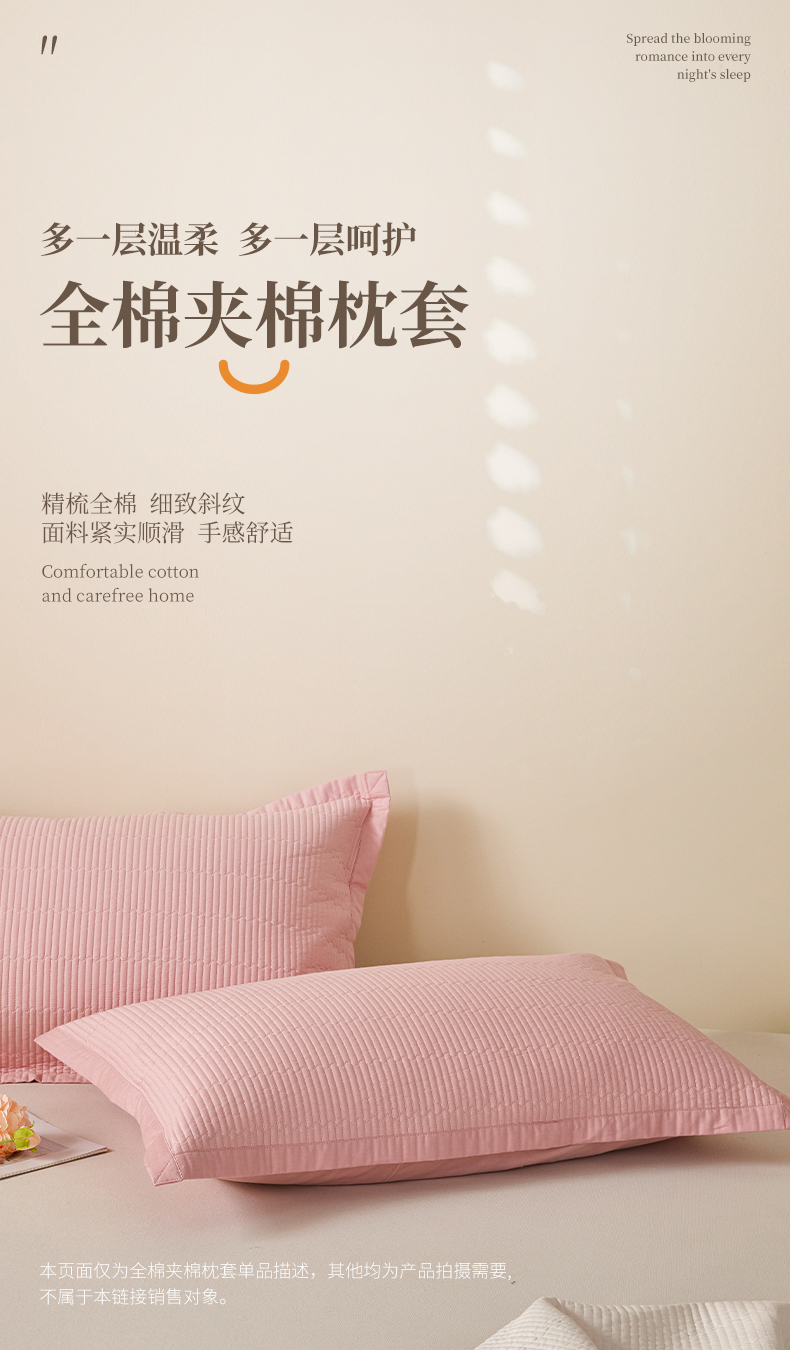 商品名称:元元家居(元元被业) 2026新款全棉纯棉13372系列夹棉枕套单件枕套单品单枕套-纯色款 果粉