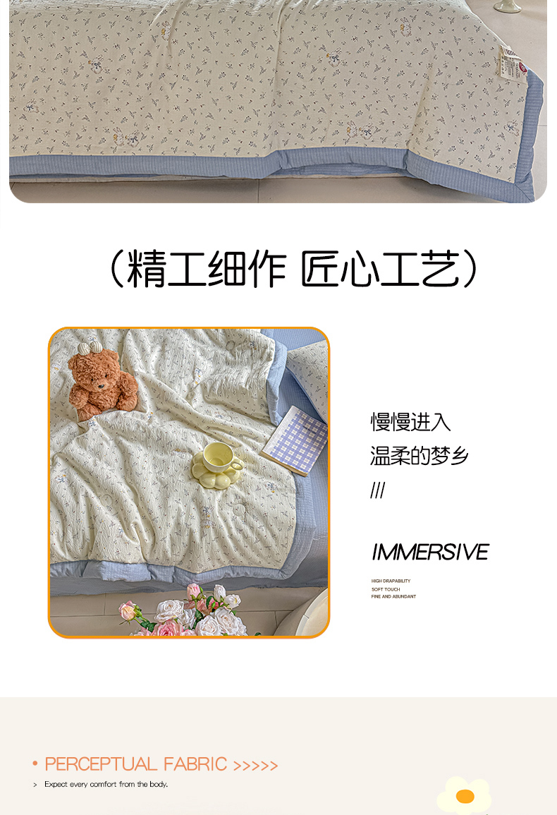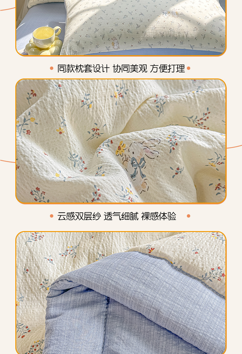 商品名称:秋泽家纺 2026新款A类云感双层纱大豆纤维夏凉被空调被小清新印花夏被 蓝境兔语