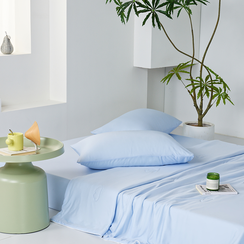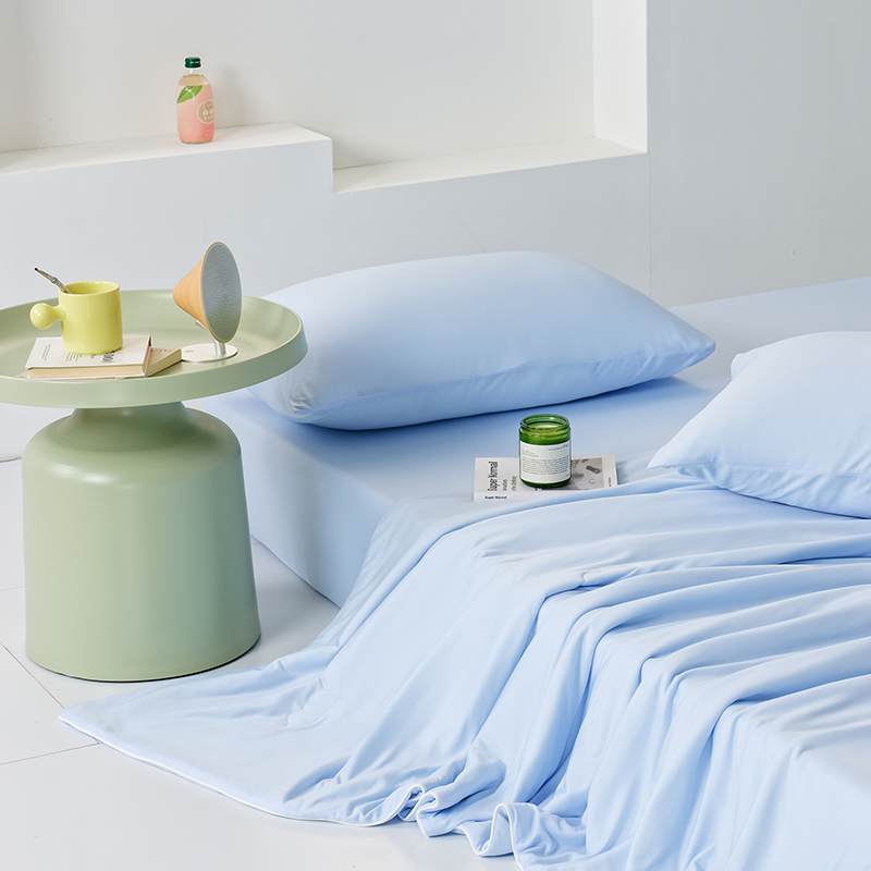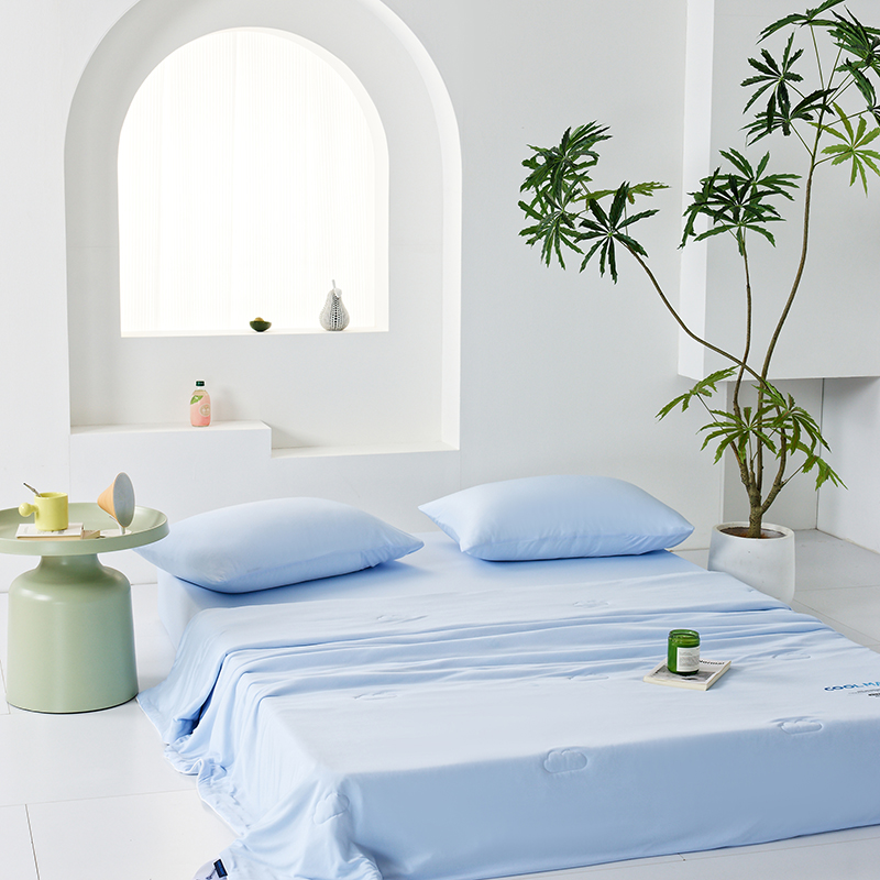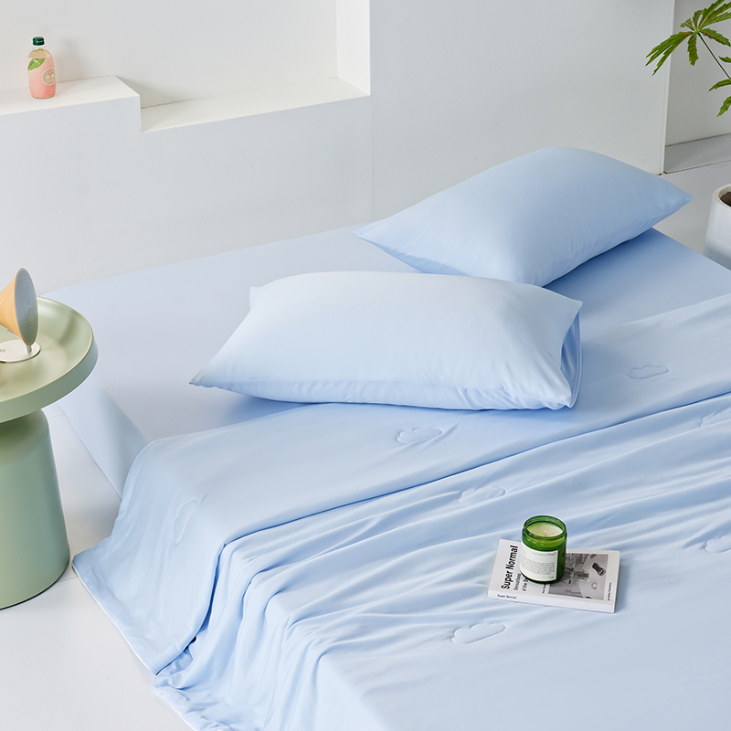 (总)LADYCOCO可可家居 2026新款锦纶凉感床笠三件套,浅灰,浅蓝