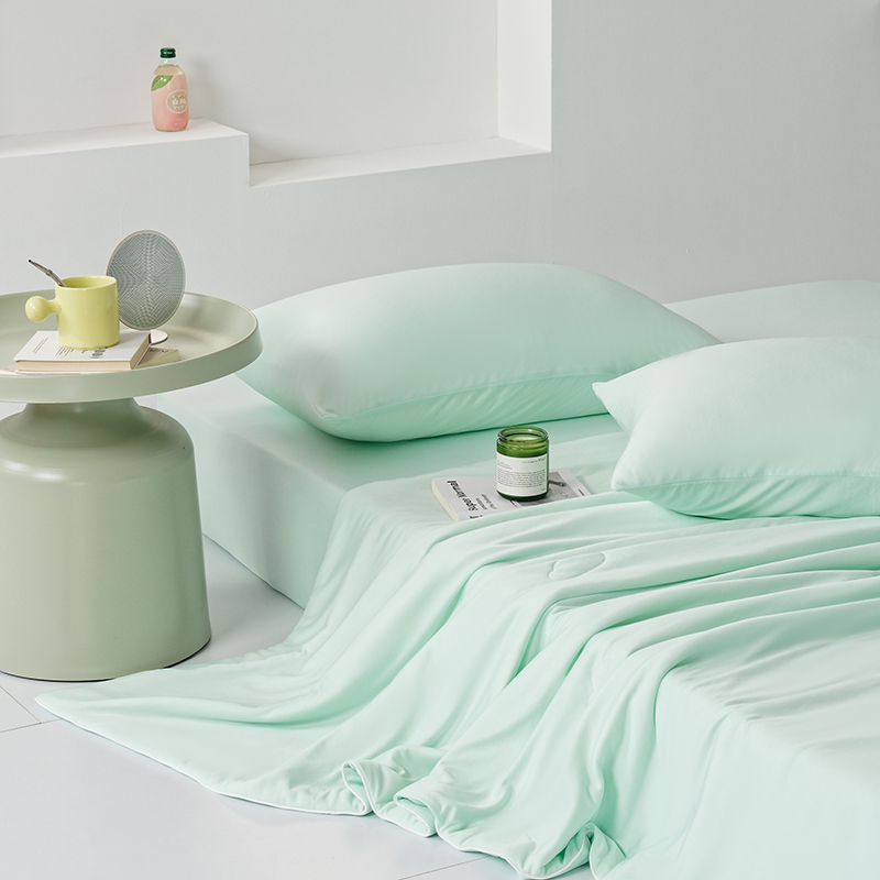 (总)LADYCOCO可可家居 2026新款PE冰锦丝语床笠枕套,琥珀绿,清凉粉,微风蓝,夏夜灰