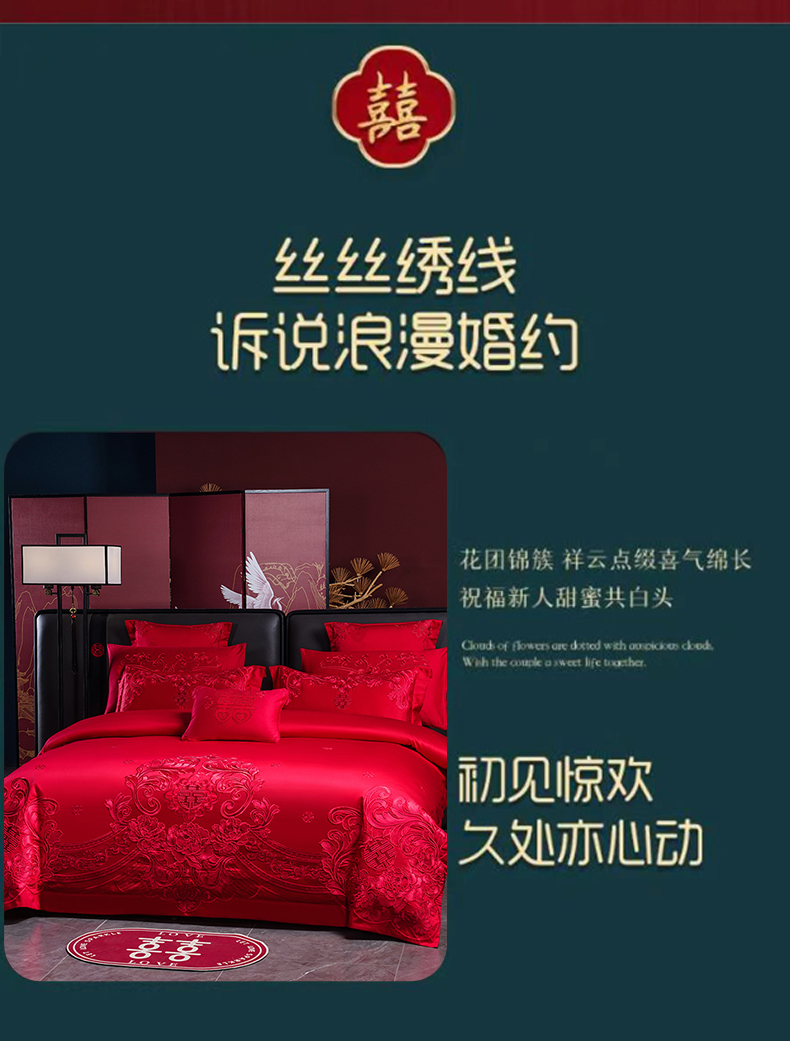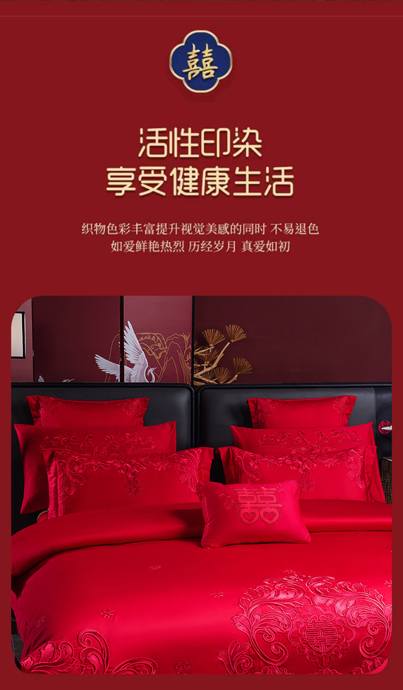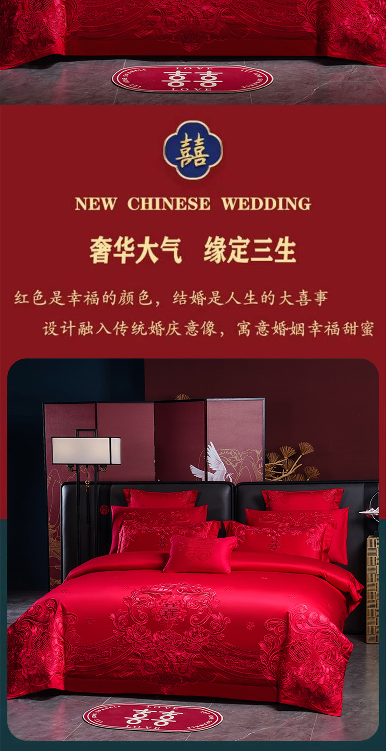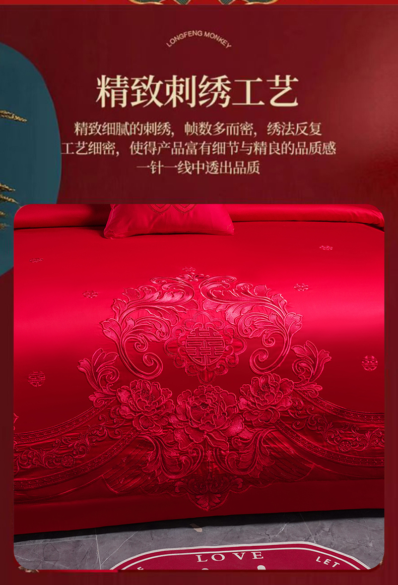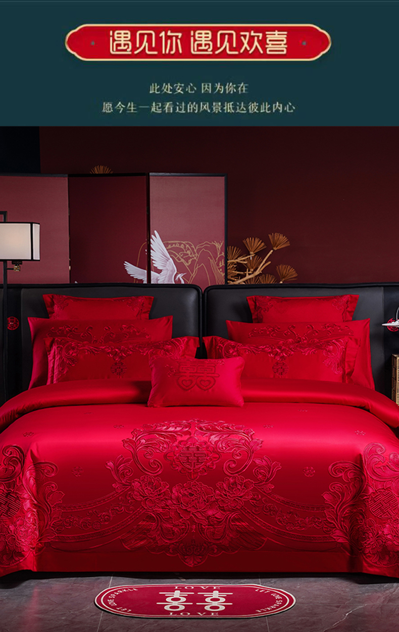 当前位置: 91家纺网 > 商品网购 > 床品套件 > 四件套 > 婚庆四件套 > 博之洋婚庆 2026新款全棉长绒棉刺绣婚庆四件套多件套 盛世红妆