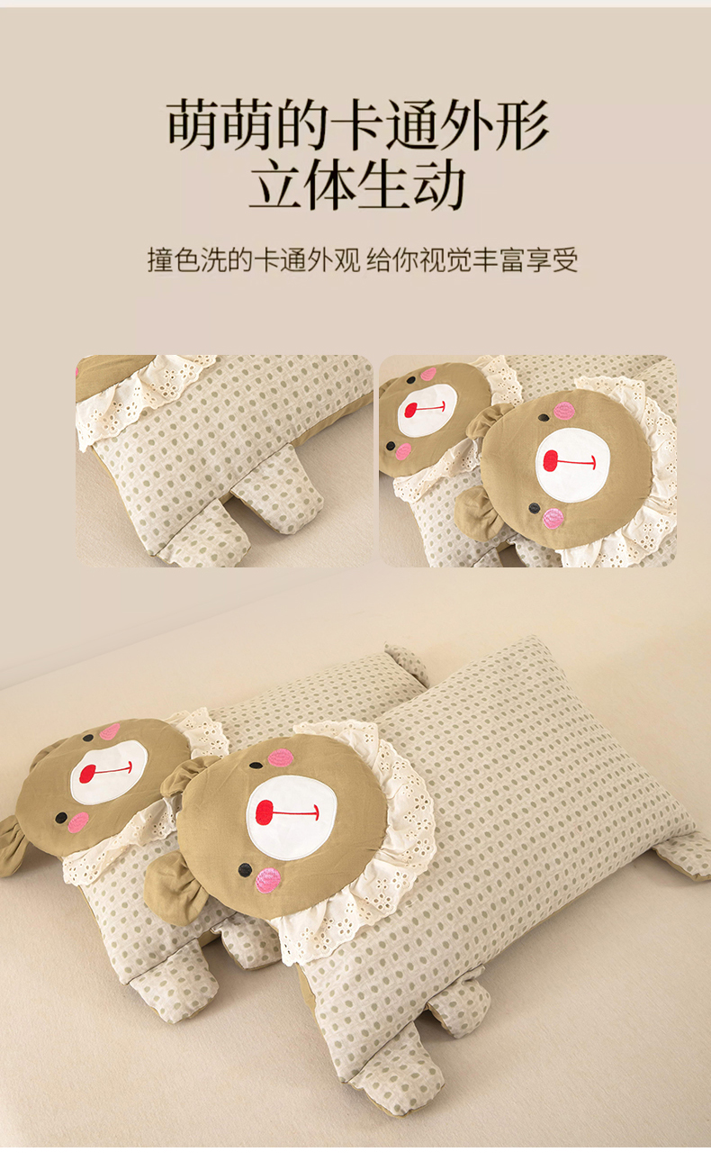 商品名称:(总)梦莱家纺 2026新款水洗棉麻荞麦枕枕头枕芯系列-花边熊