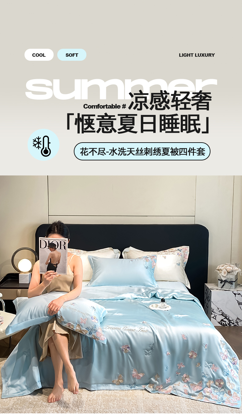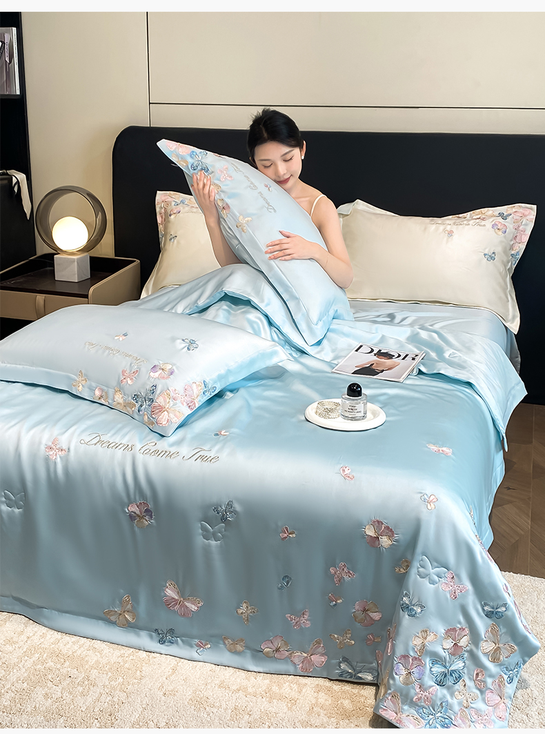 当前位置: 91家纺网 > 商品网购 > 床品套件 > 四件套 > 夏被四件套 > 置顶家纺 2026新款水洗天丝夏被四件套-花不尽 花不尽-天蓝