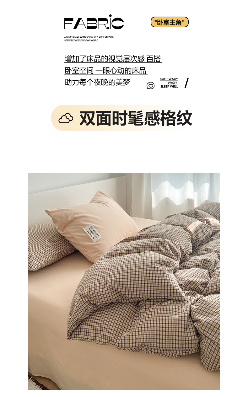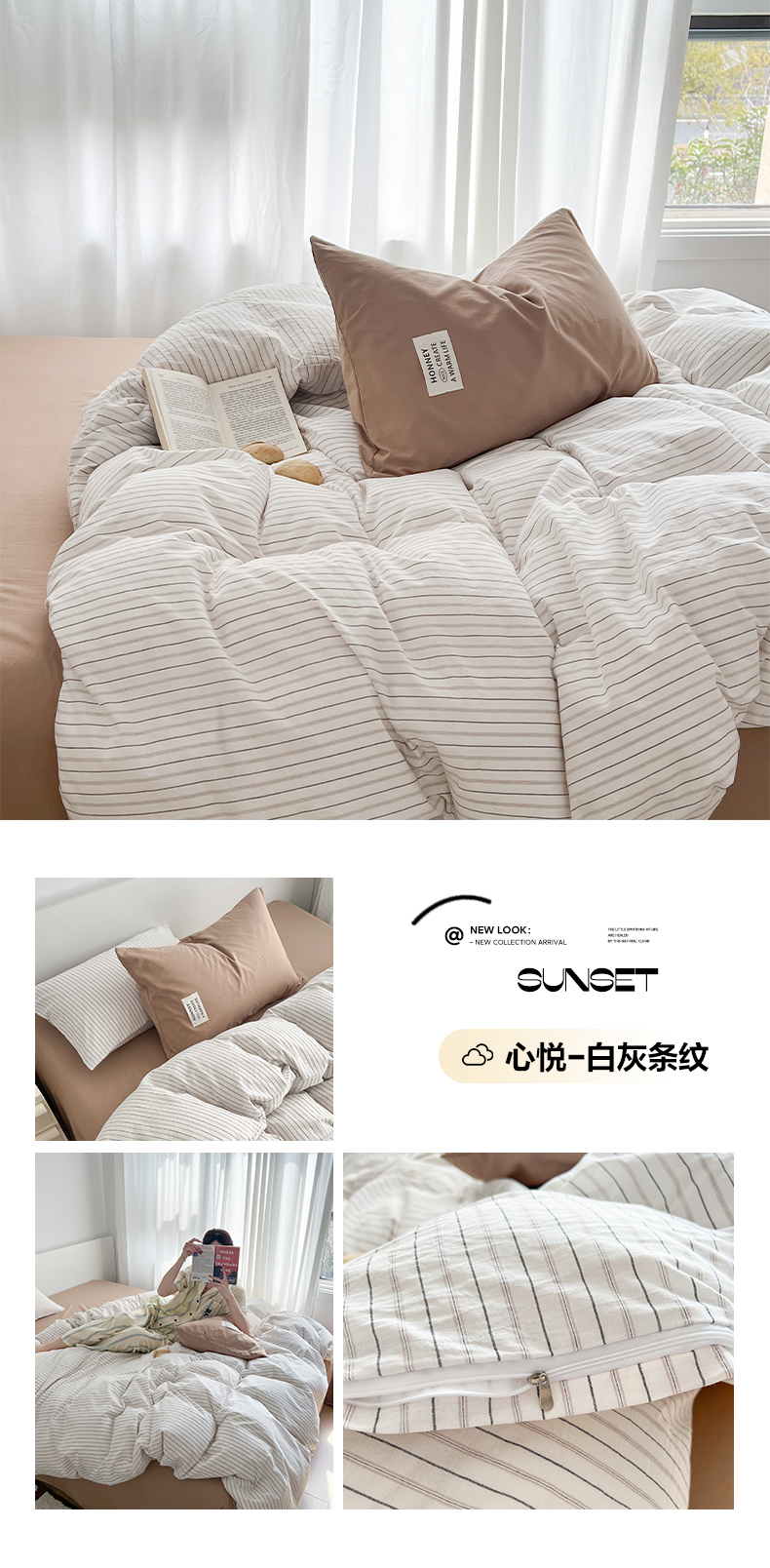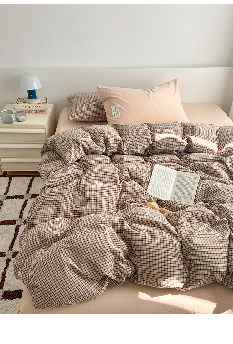 当前位置: 91家纺网 > 商品网购 > 床品套件 > 四件套 > 全棉普通四件套 > 早晨家纺 2026新款INS博主风A类全棉纯棉色织水洗棉格子四件套 心悦-白灰条纹