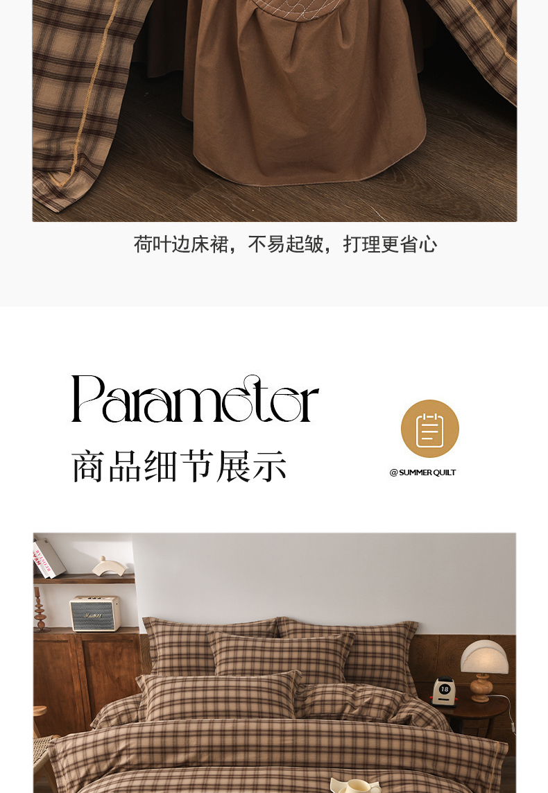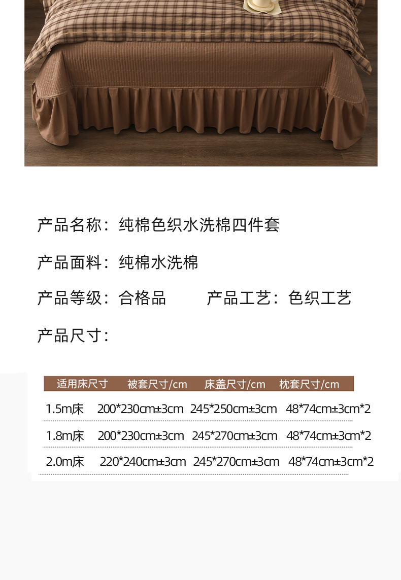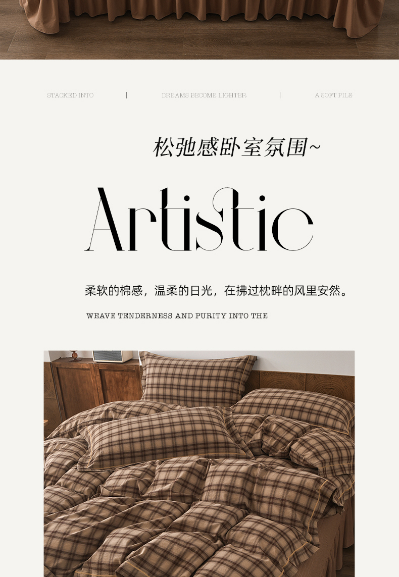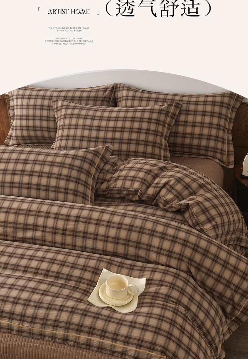 商品名称:金艾草 2026春夏新款全棉纯棉色织水洗棉床盖四件套 芳菲-咖