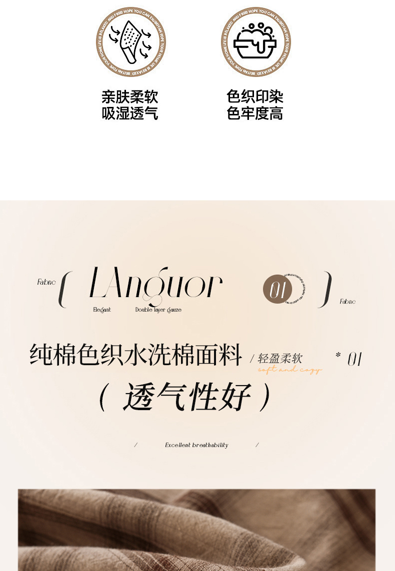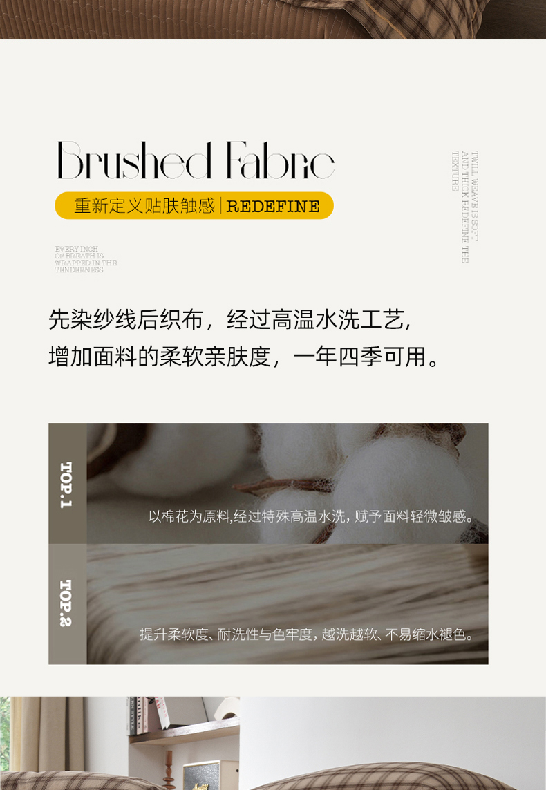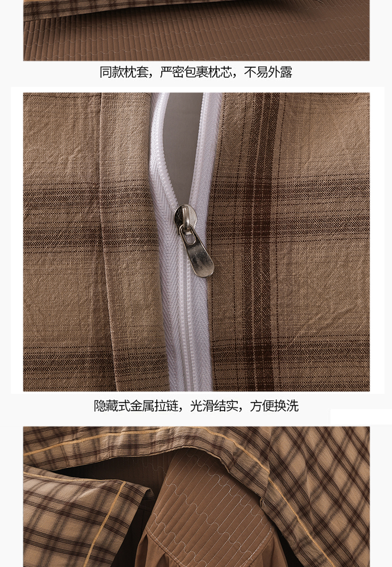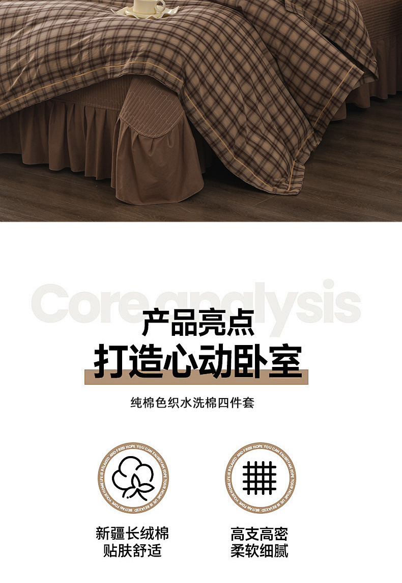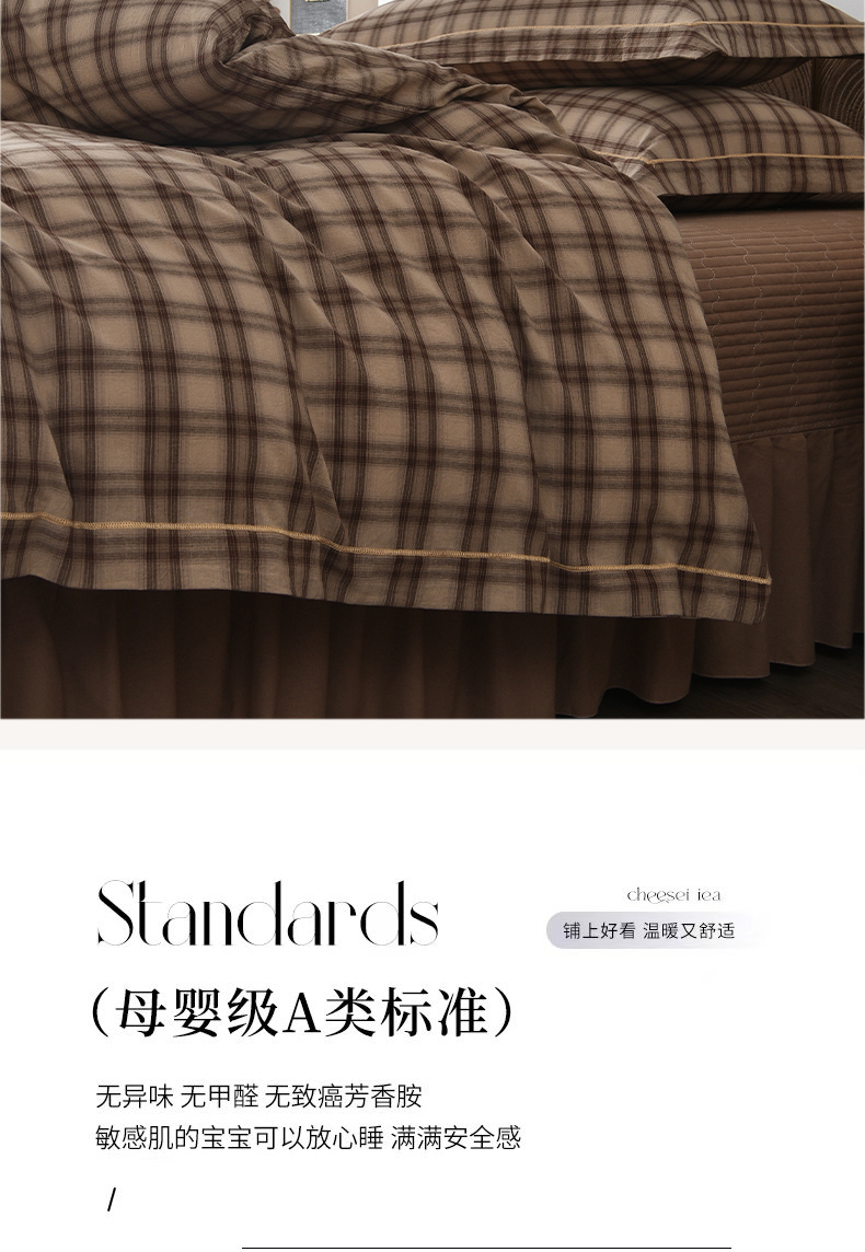商品名称:金艾草 2026春夏新款全棉纯棉色织水洗棉床盖四件套 芳菲-咖
