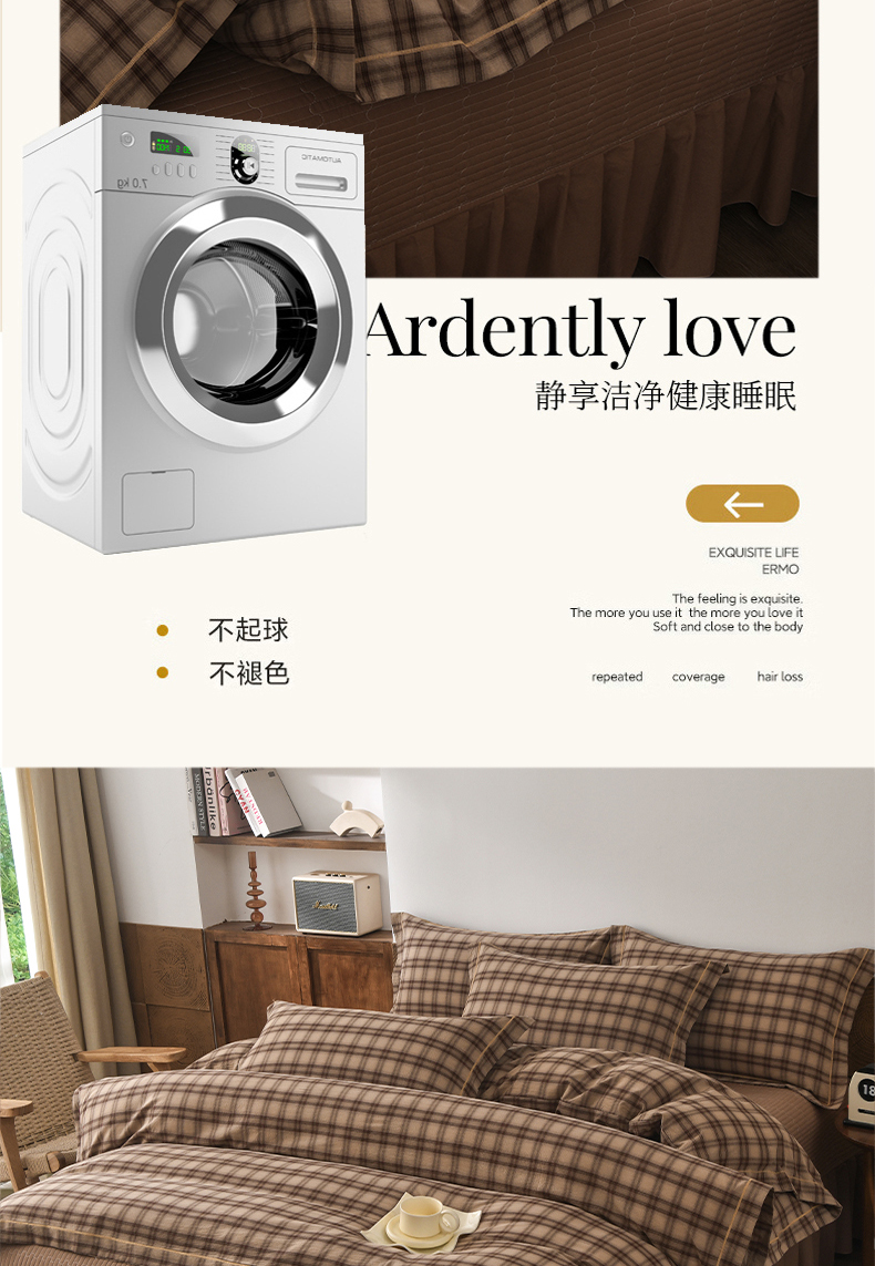 (总)金艾草 2026新款全棉纯棉水洗棉四件套床单款-复古风格,沉香-橘红,沉香-褐色,沉香-咖色,芳菲-咖,关山月-灰,关山月-咖,条纹-粉色,条纹-蓝色