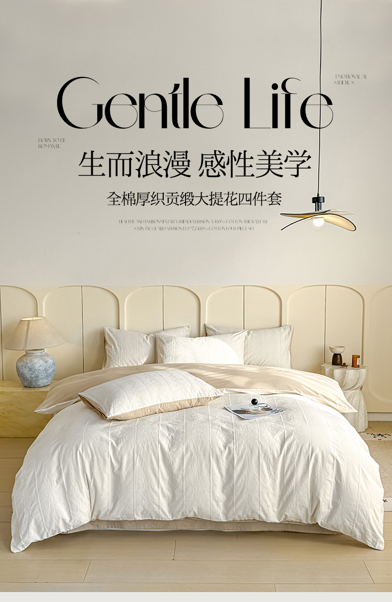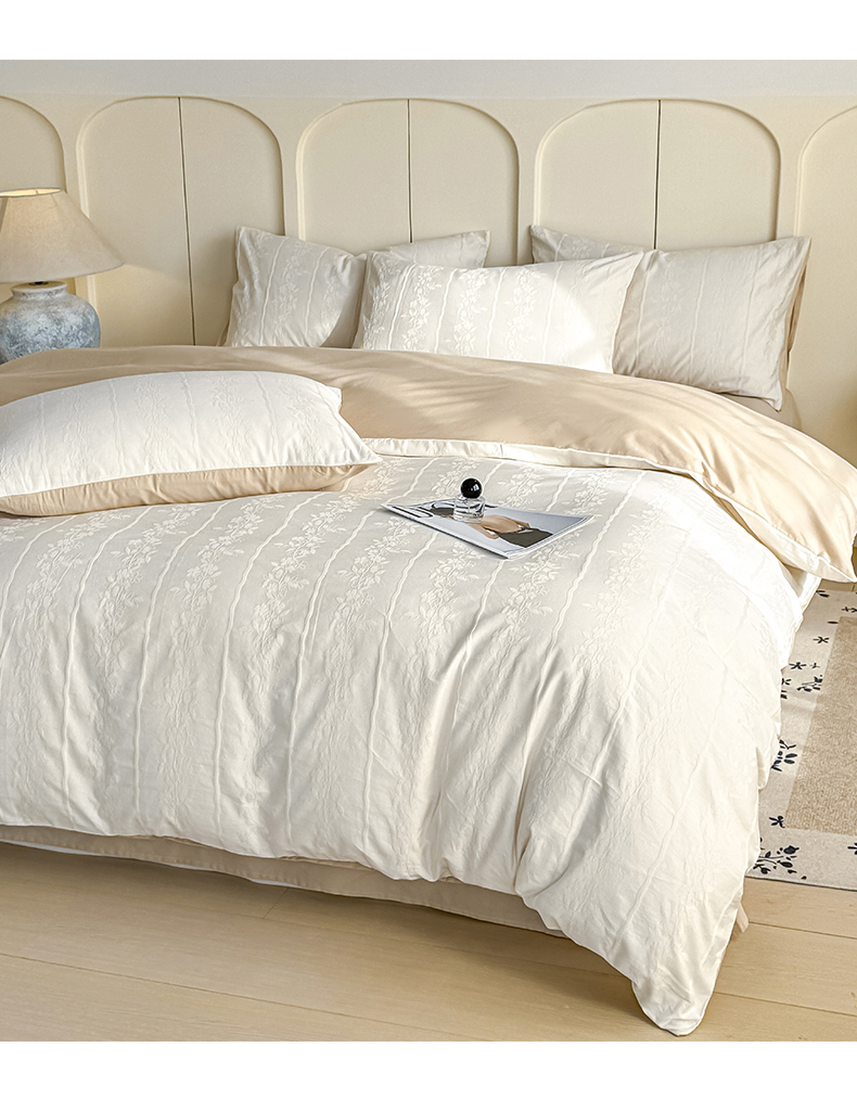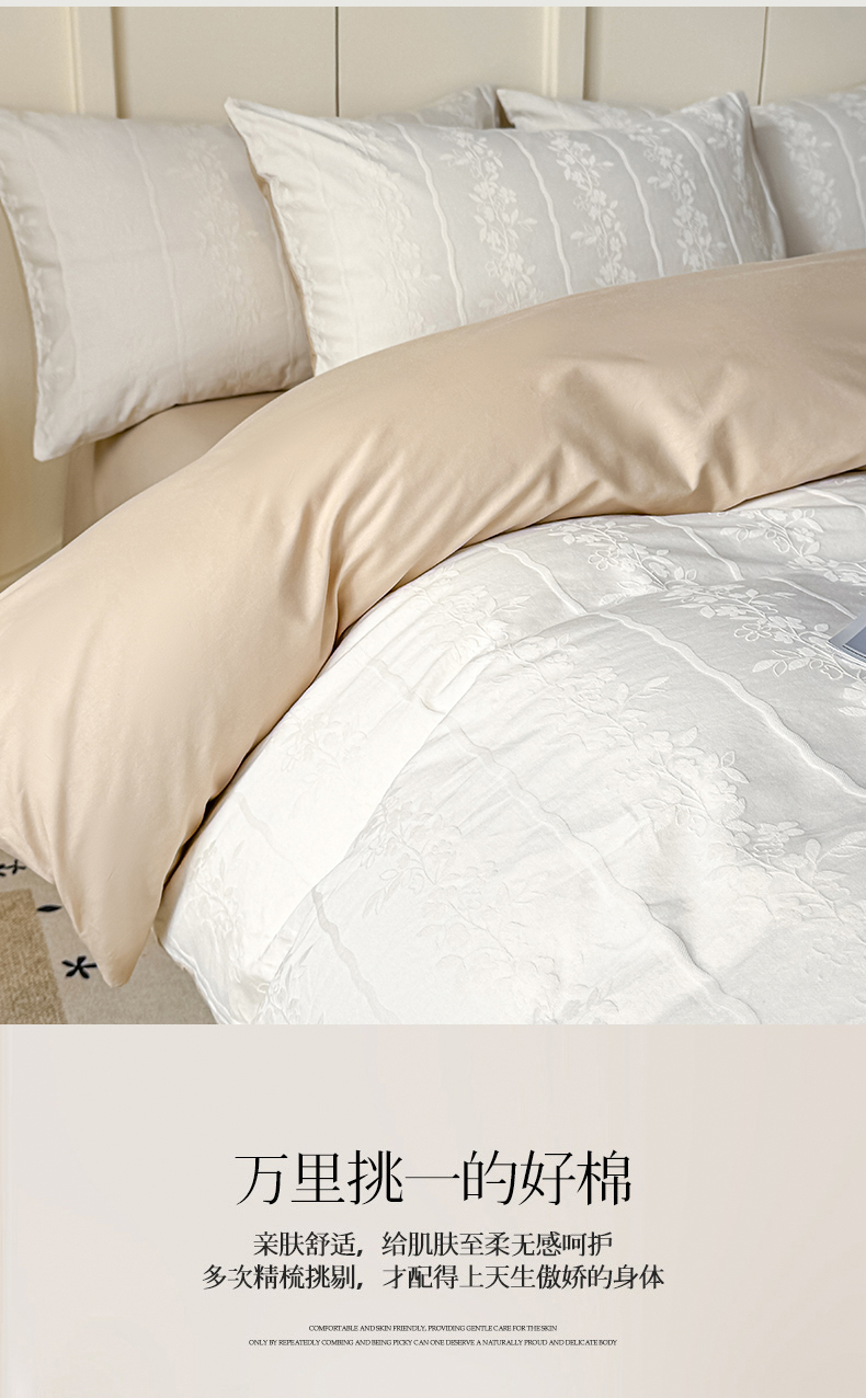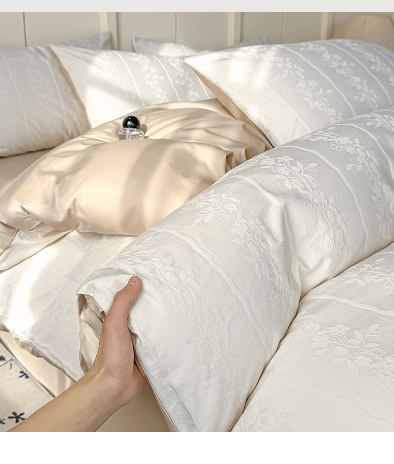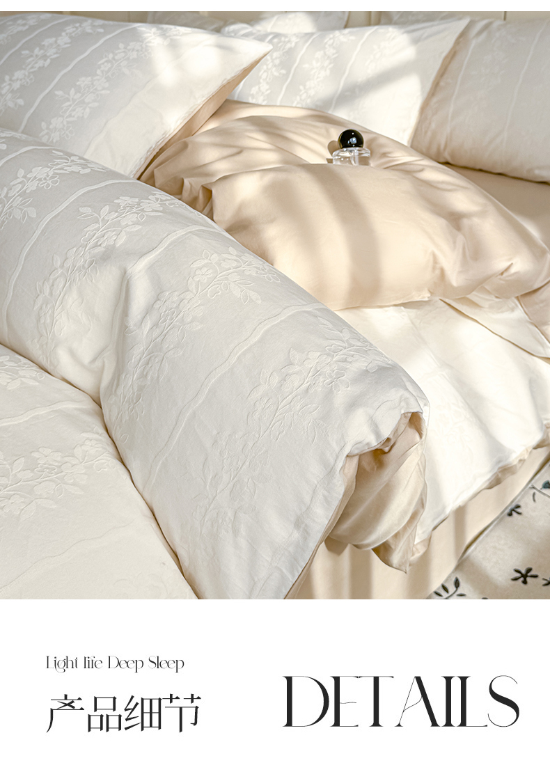 当前位置: 91家纺网 > 商品网购 > 床品套件 > 四件套 > 全棉普通四件套 > 灰鲸 2026新款全棉纯棉厚织贡缎大提花四件套 花蔓-杏仁奶霜