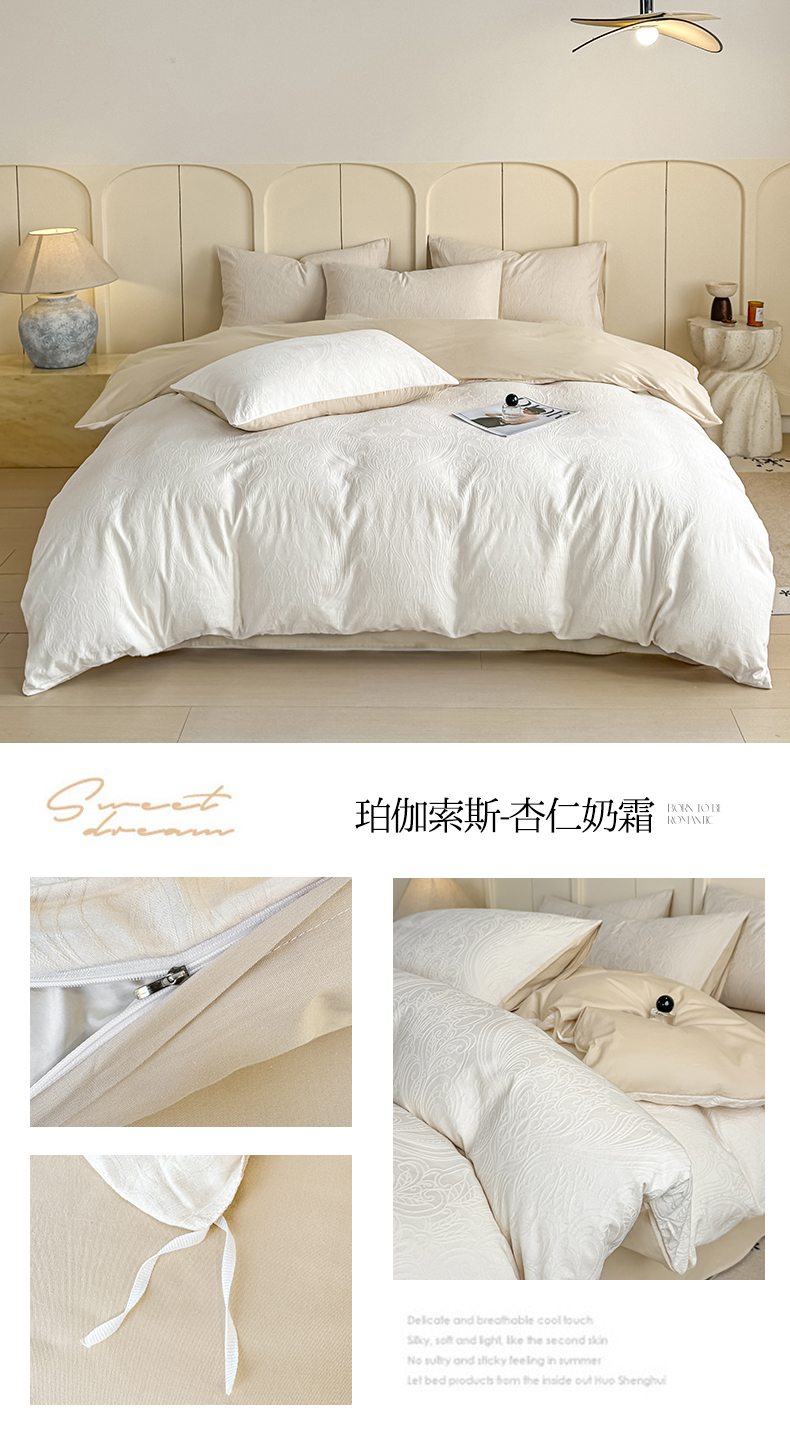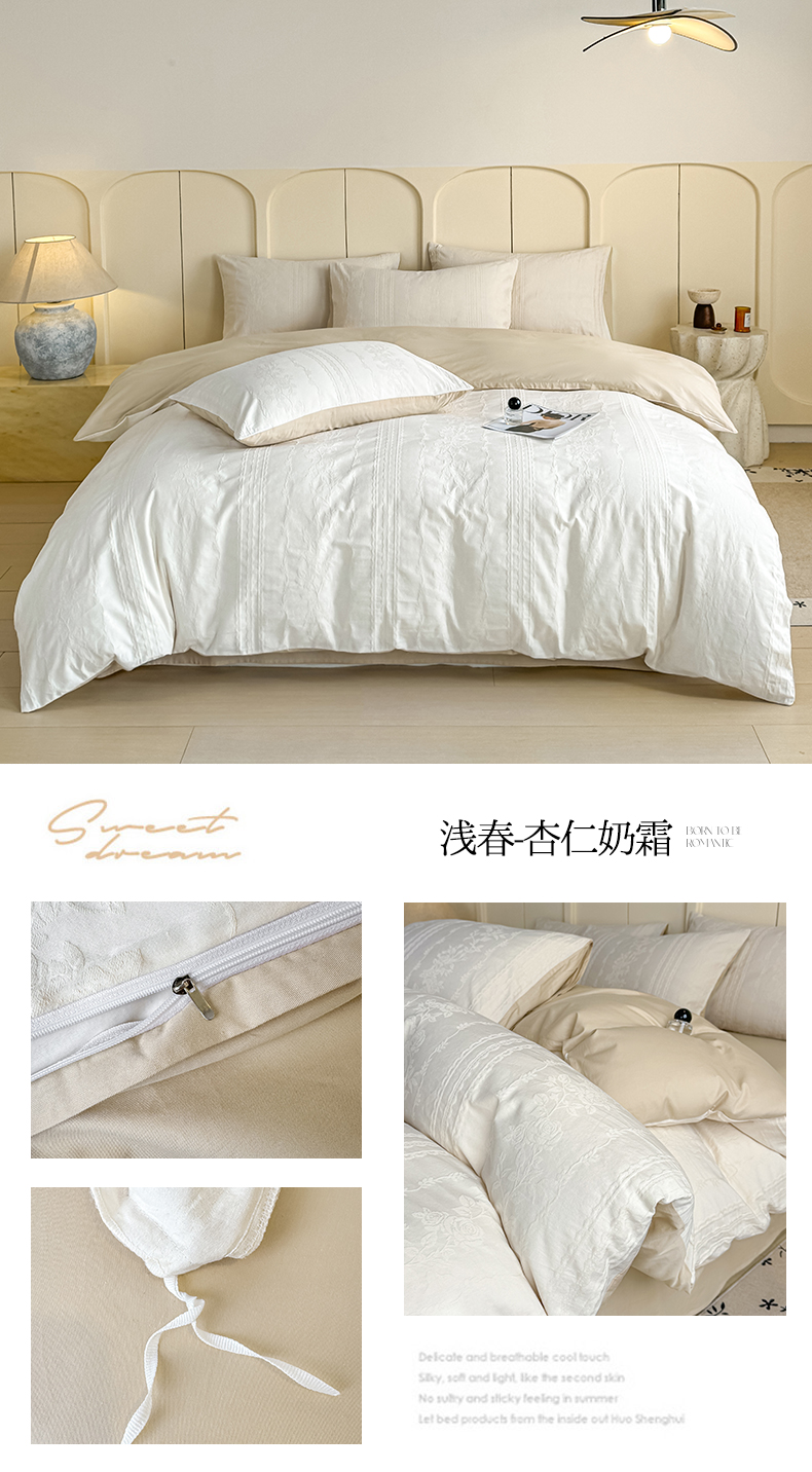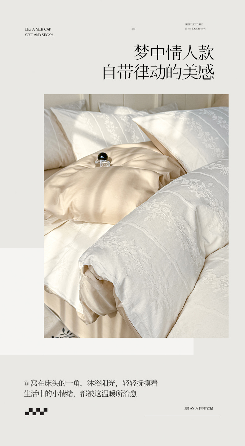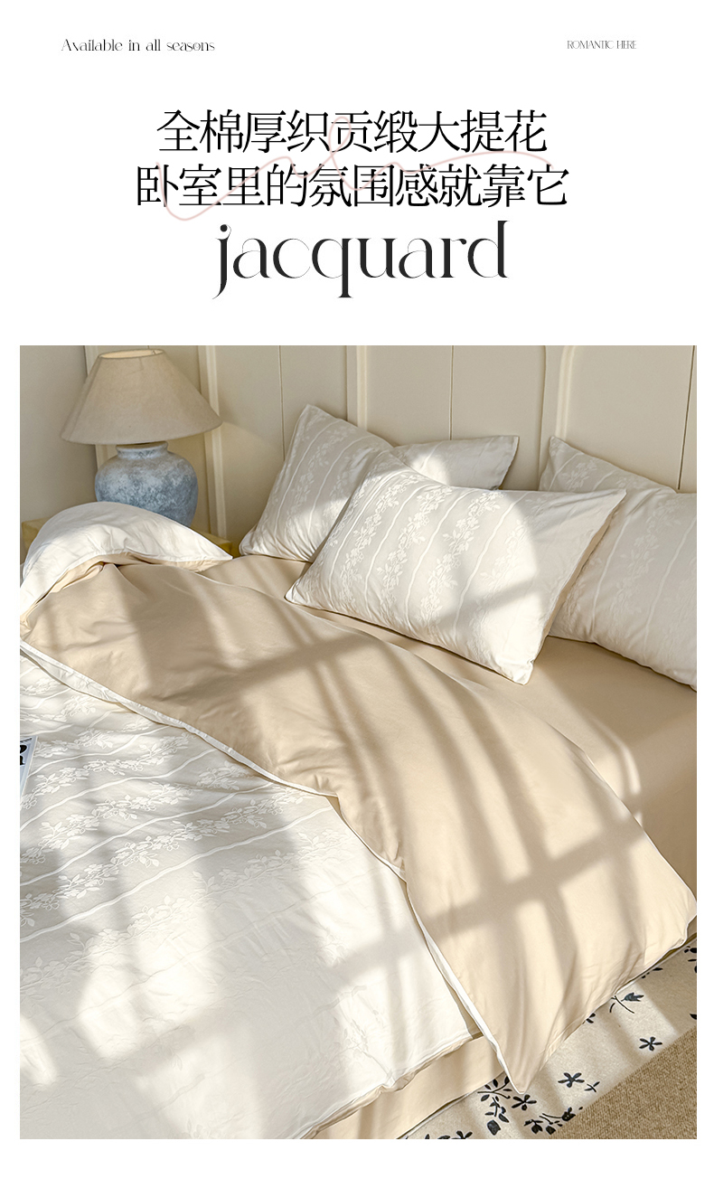 当前位置: 91家纺网 > 商品网购 > 床品套件 > 四件套 > 全棉普通四件套 > 灰鲸 2026新款全棉纯棉厚织贡缎大提花四件套 花蔓-杏仁奶霜