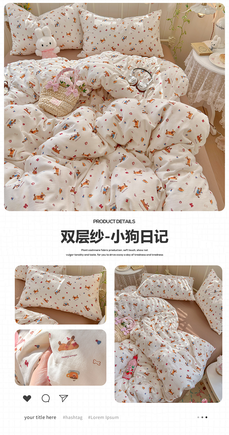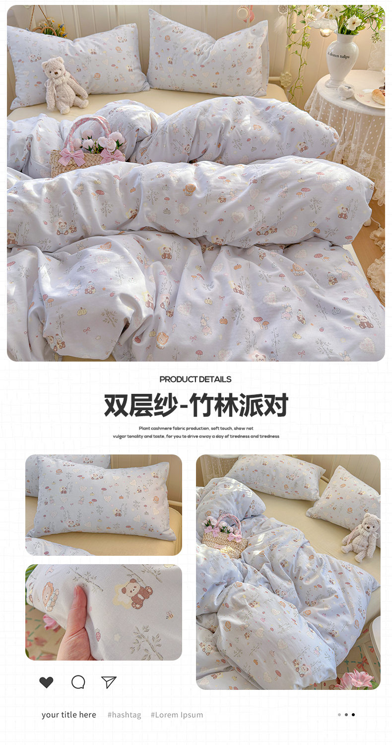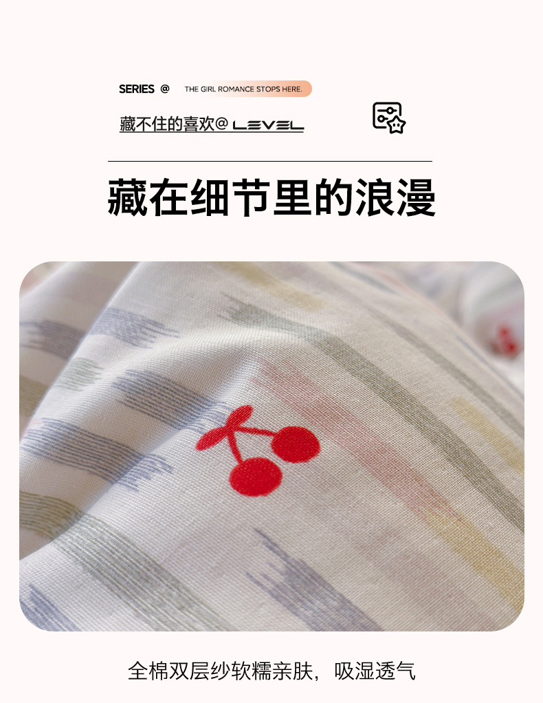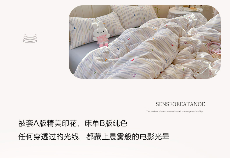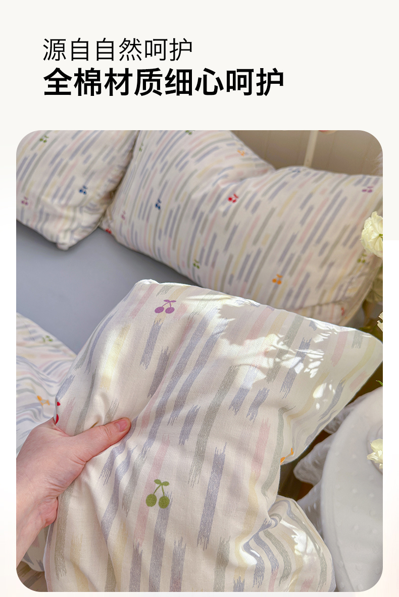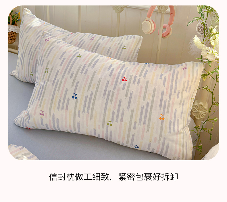 当前位置: 91家纺网 > 商品网购 > 床品套件 > 四件套 > 全棉普通四件套 > 名兮家居 2026春夏新款全棉纯棉A类双层纱四件套 双层纱-彩条樱桃