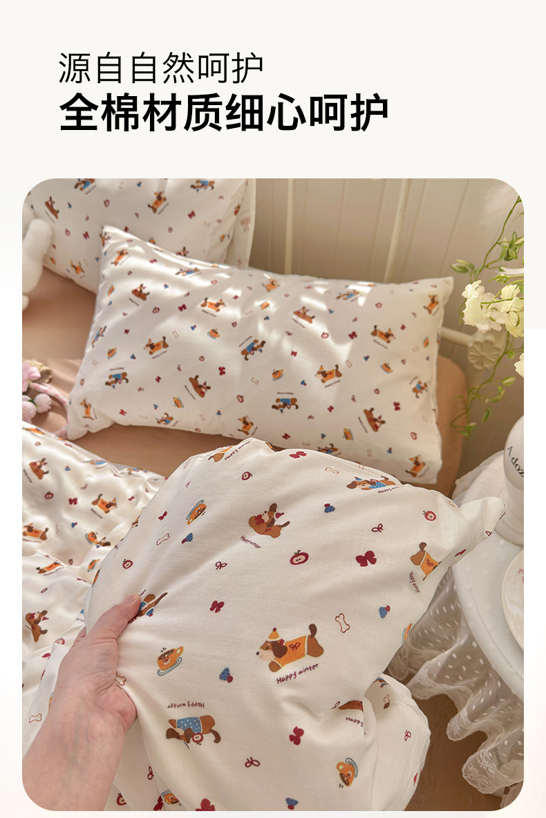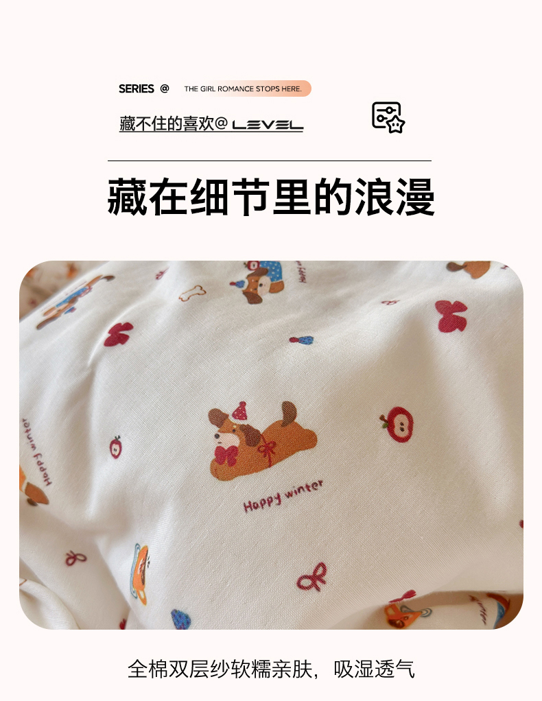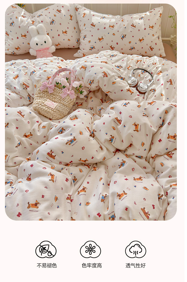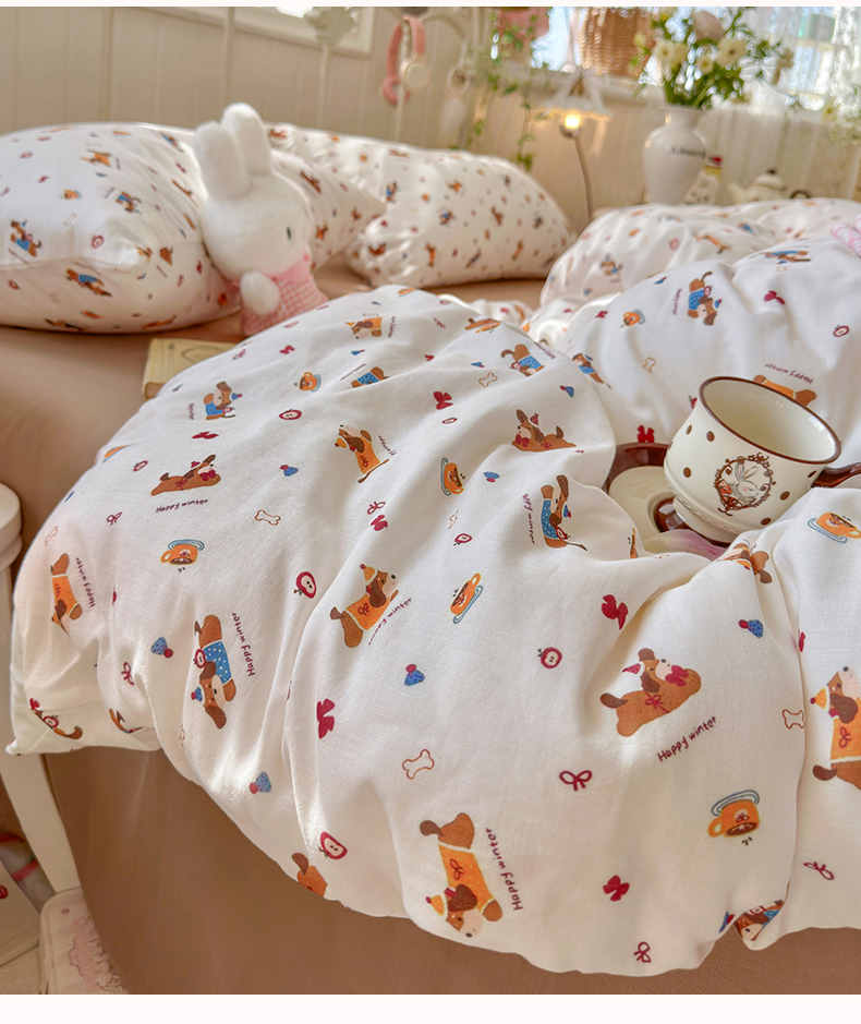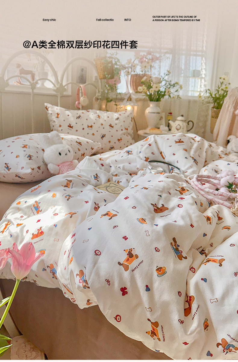 当前位置: 91家纺网 > 商品网购 > 床品套件 > 四件套 > 全棉普通四件套 > 名兮家居 2026春夏新款全棉纯棉A类双层纱四件套 双层纱-小狗日记