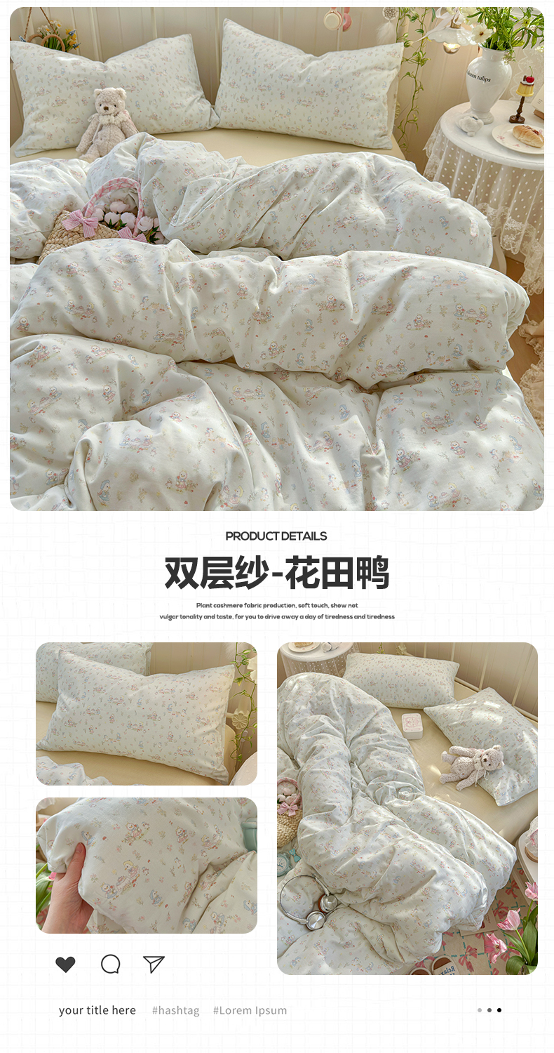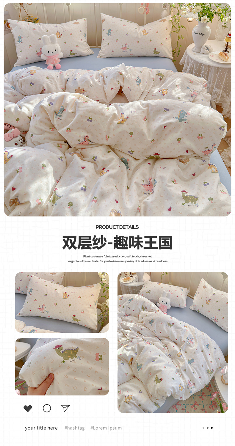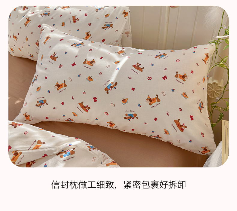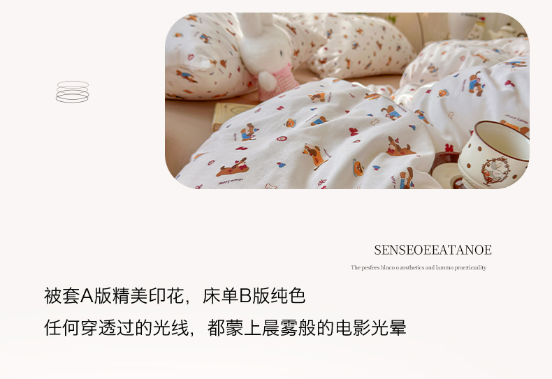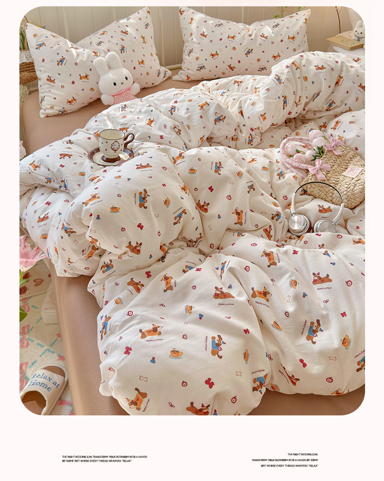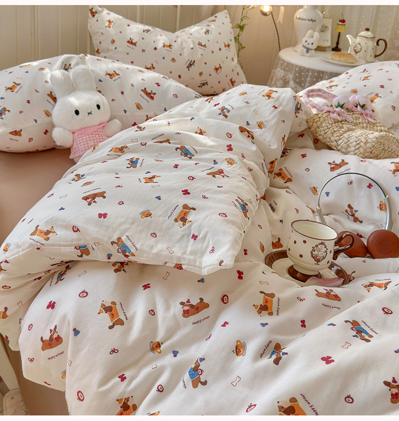 当前位置: 91家纺网 > 商品网购 > 床品套件 > 四件套 > 全棉普通四件套 > 名兮家居 2026春夏新款全棉纯棉A类双层纱四件套 双层纱-小狗日记