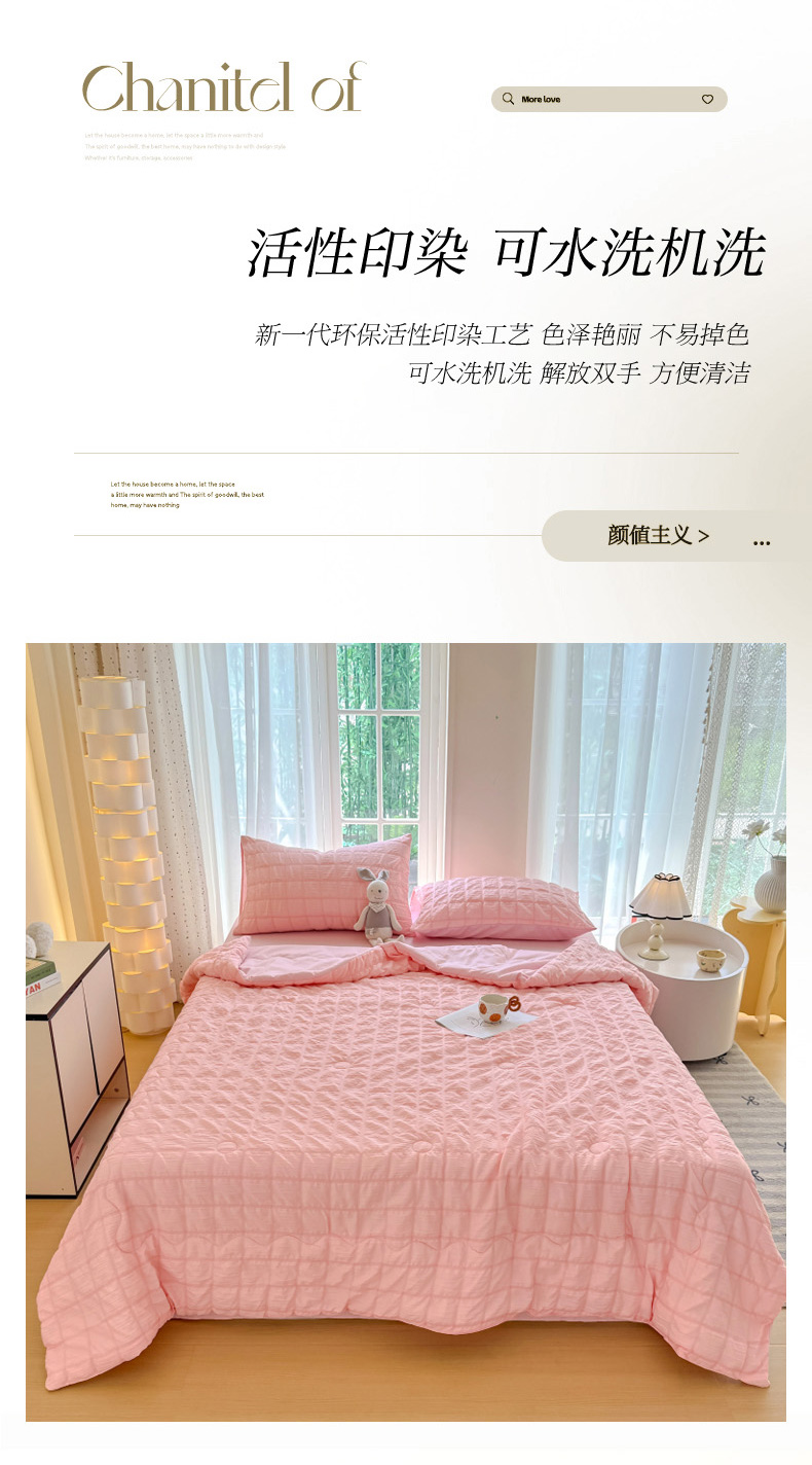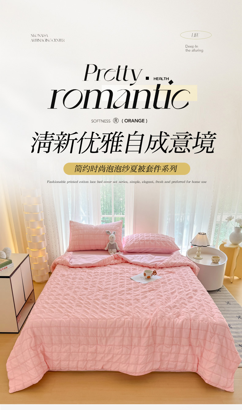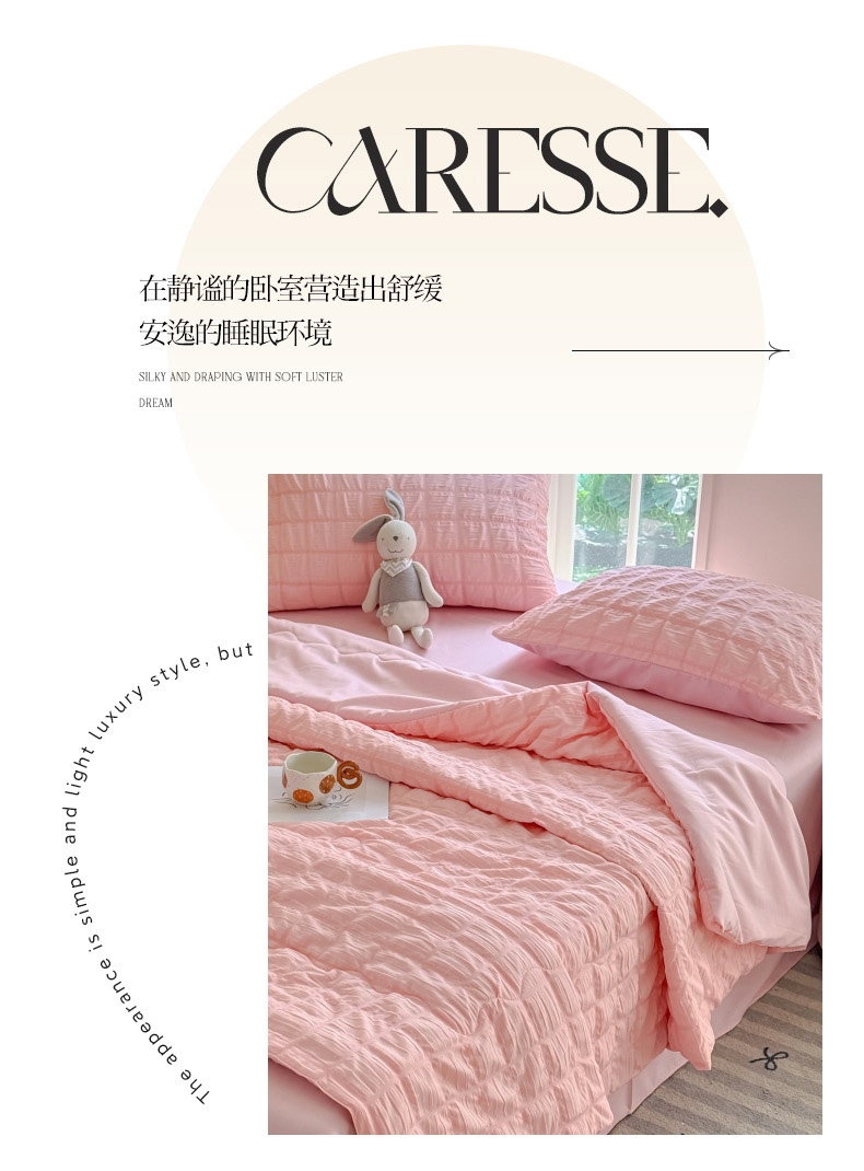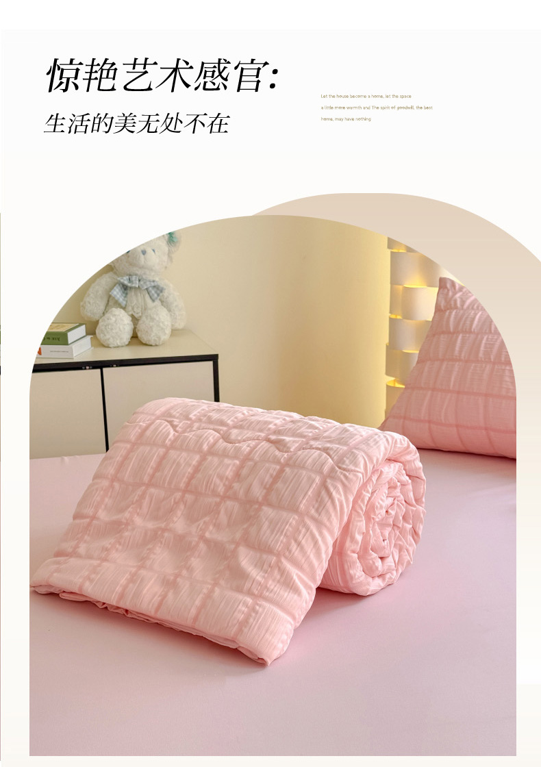 • 91家纺网 家纺一手货源 找家纺 瑞禾家纺 2026新款泡泡纱夏被空调被夏凉被四件套 蜜桃粉