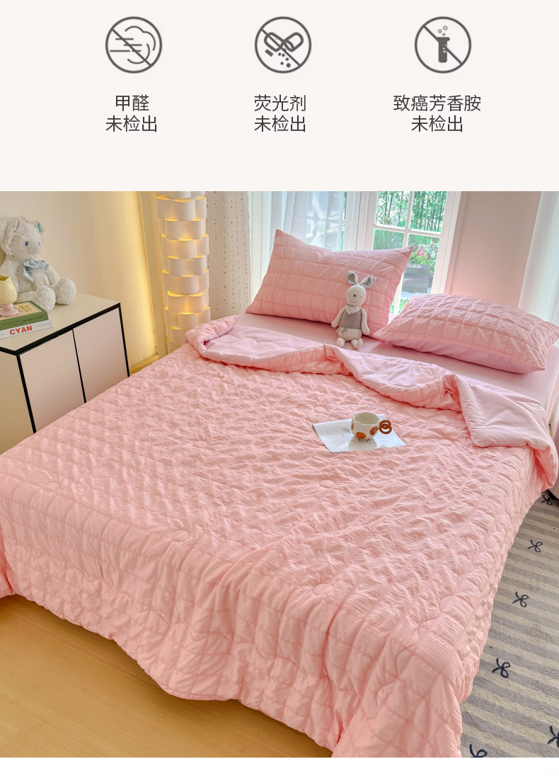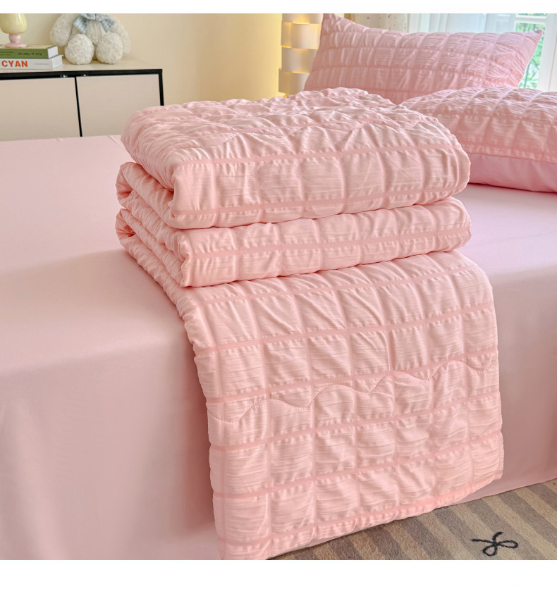 瑞禾家纺 2026新款泡泡纱夏被空调被夏凉被四件套 蜜桃粉