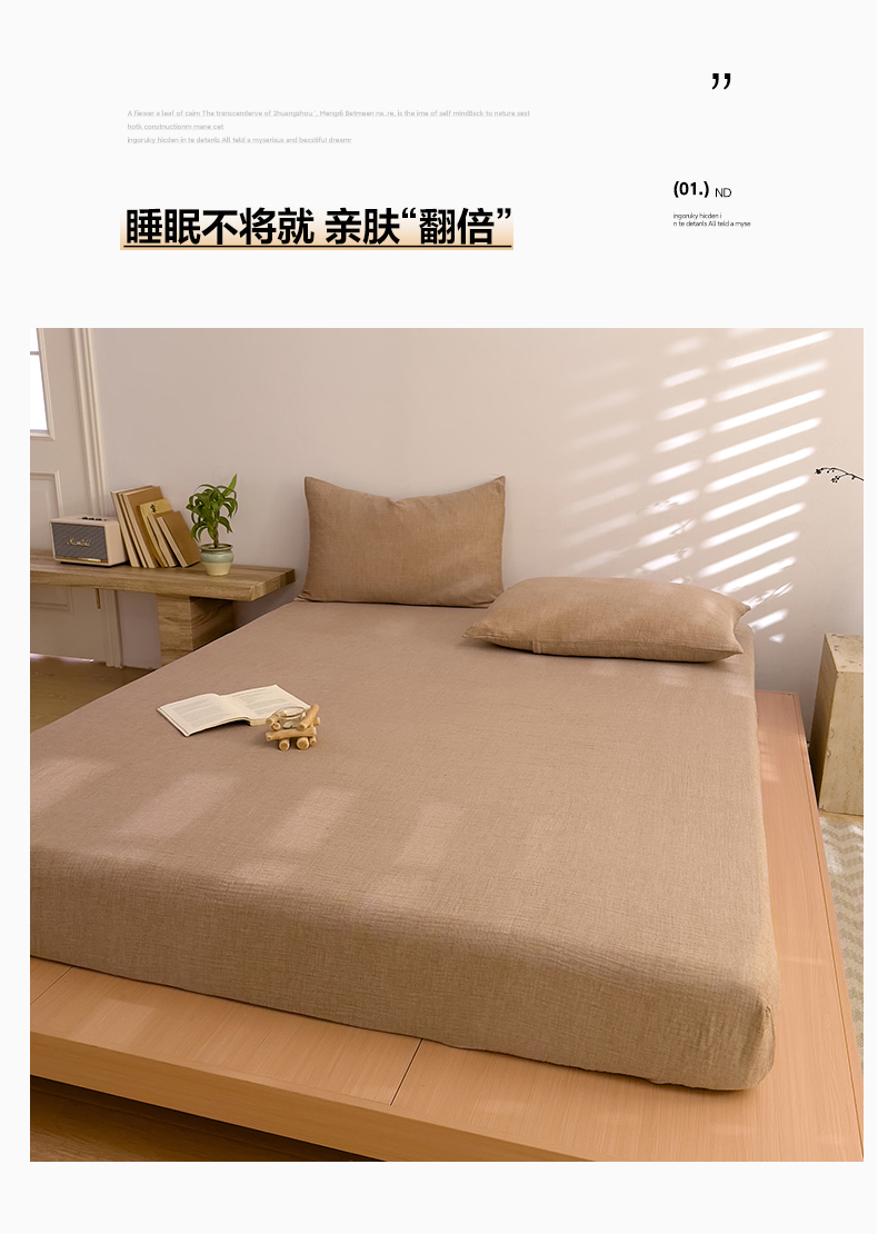 • 91家纺网 家纺一手货源 找家纺 DoDo 兜兜 2026新全棉纯棉A类色织皱皱纱单床笠单件床笠单品 纯色-奶茶棕