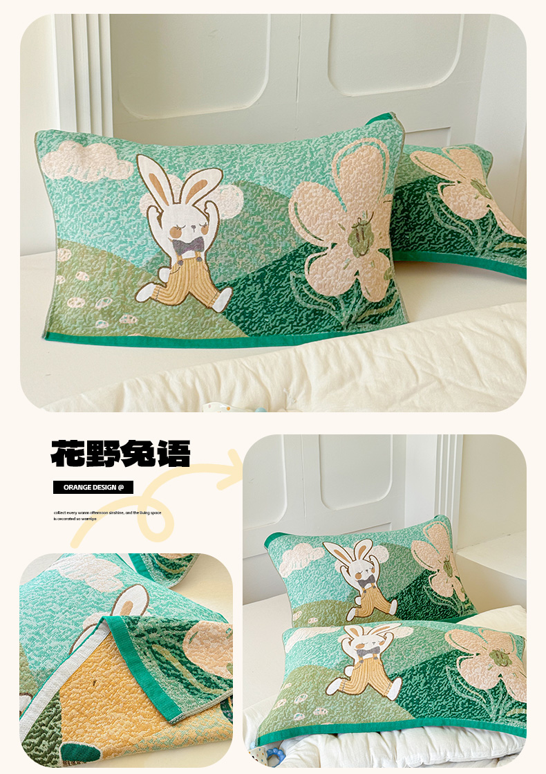 商品名称:乐家毛巾被(工厂自产自销) 2026新款全棉A类母婴级卡通软绵绵系列枕巾隔汗巾 花野兔语