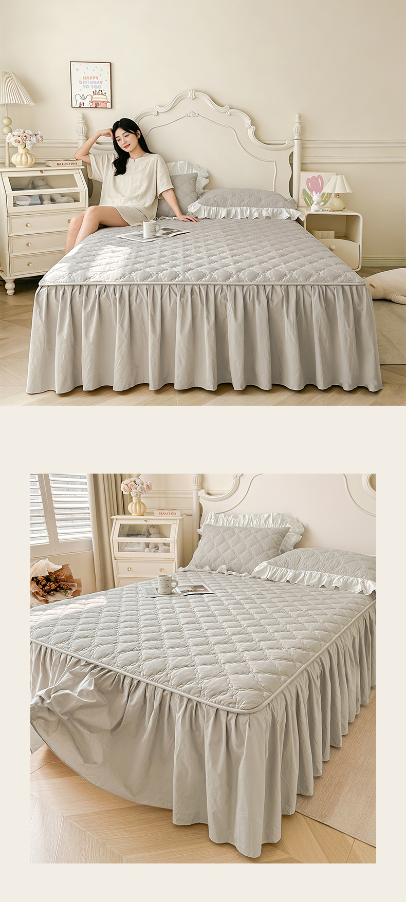(总)佳笠家居 2026春夏新款A类韩版全棉水洗棉新疆棉花少女风床裙单件床裙单品单床裙-模特图,床裙款-枫舞灰,床裙款-贵族白,床裙款-晴空蓝,床裙款-象牙黄,床裙款-星空紫,床裙款-芝夏粉