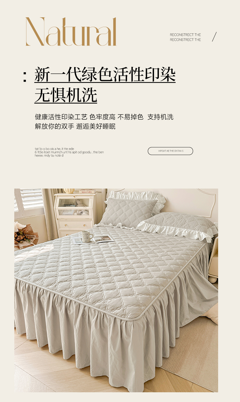 商品名称:(总)佳笠家居 2026春夏新款A类韩版全棉水洗棉新疆棉花少女风床裙单件床裙单品单床裙-床拍图
