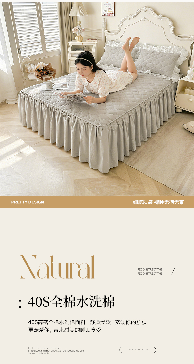 (总)佳笠家居 2026春夏新款A类韩版全棉水洗棉新疆棉花少女风床裙单件床裙单品单床裙-模特图,床裙款-枫舞灰,床裙款-贵族白,床裙款-晴空蓝,床裙款-象牙黄,床裙款-星空紫,床裙款-芝夏粉