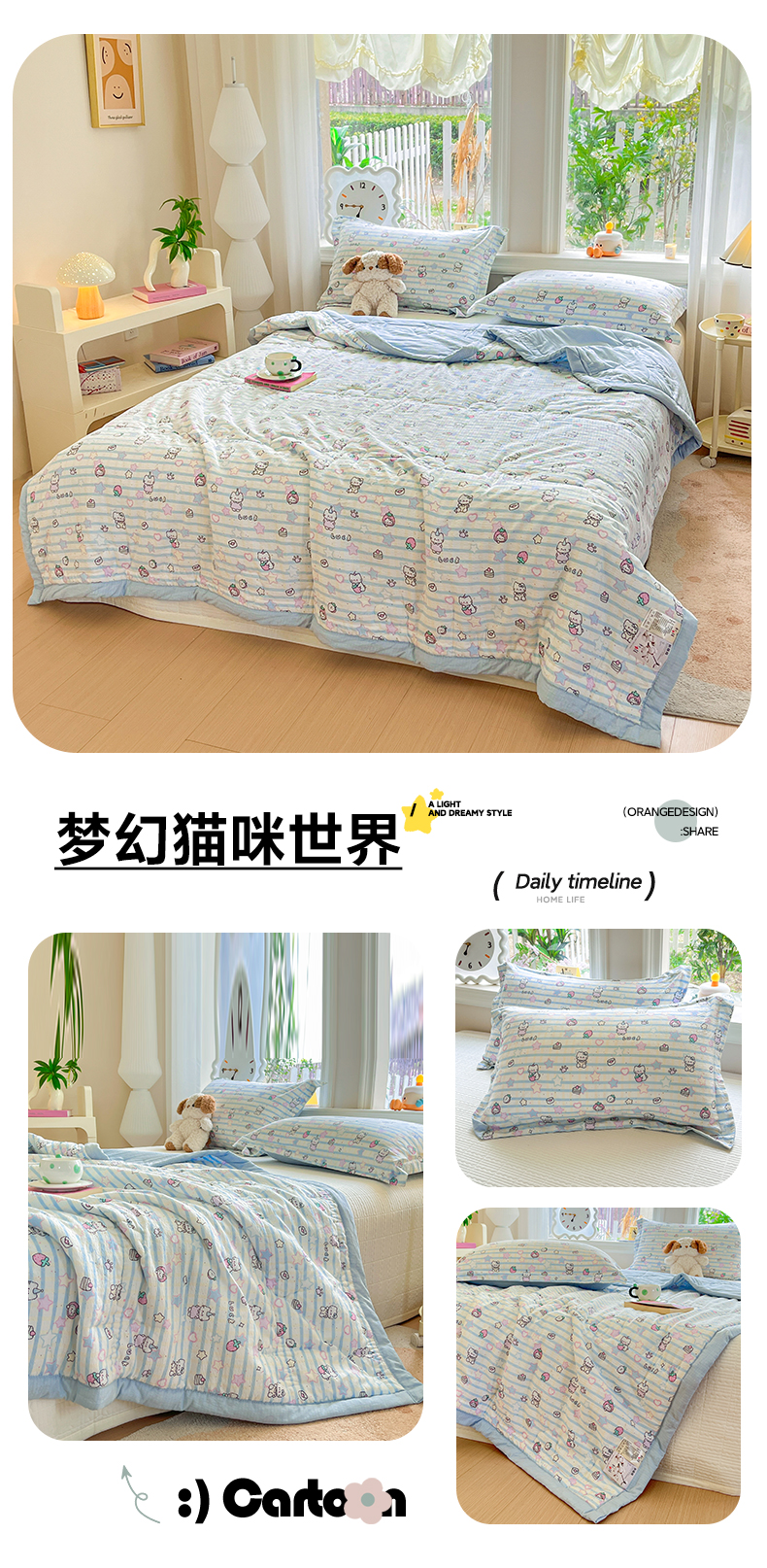 商品名称:优承佳生活馆 2026新款云感双层纱卡通小清新风格棉花夏被(提供买家秀) 梦幻猫咪世界