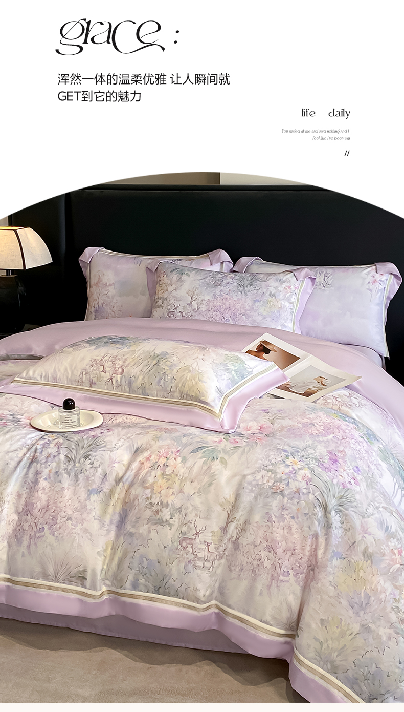 当前位置: 91家纺网 > 商品网购 > 床品套件 > 四件套 > 其它四件套 > 博纳家纺 2026新款林间鹿语系列天丝四件套 林间鹿语-浅紫