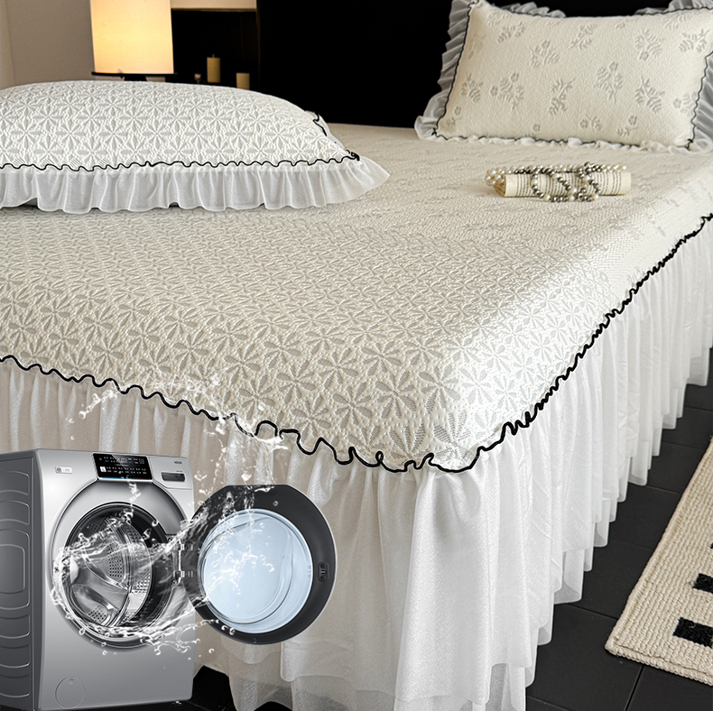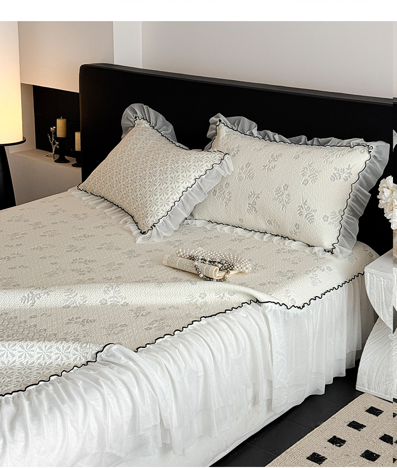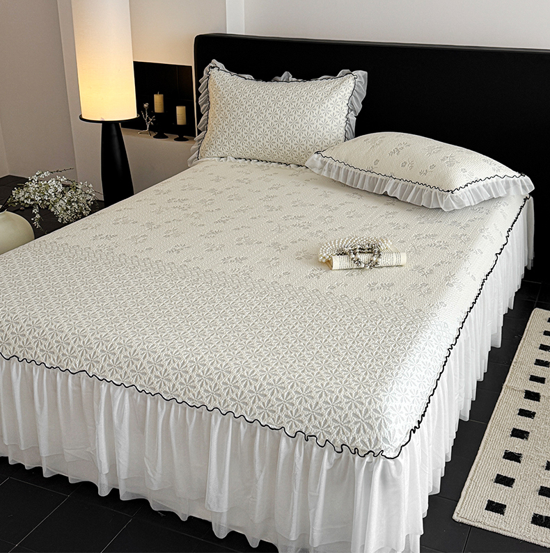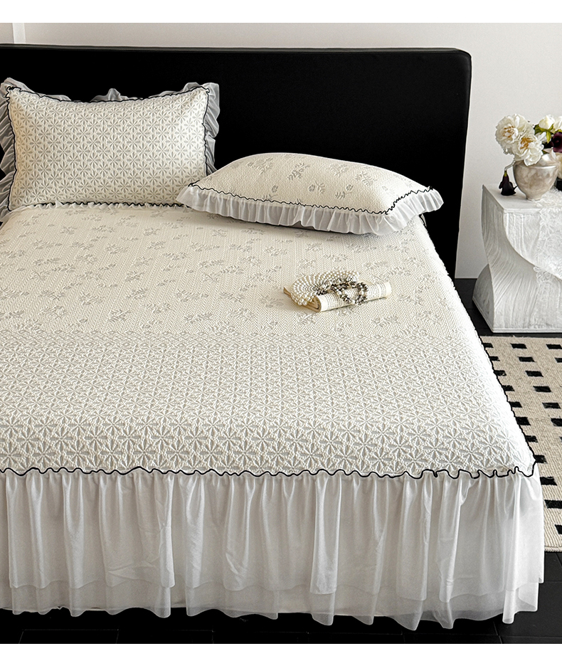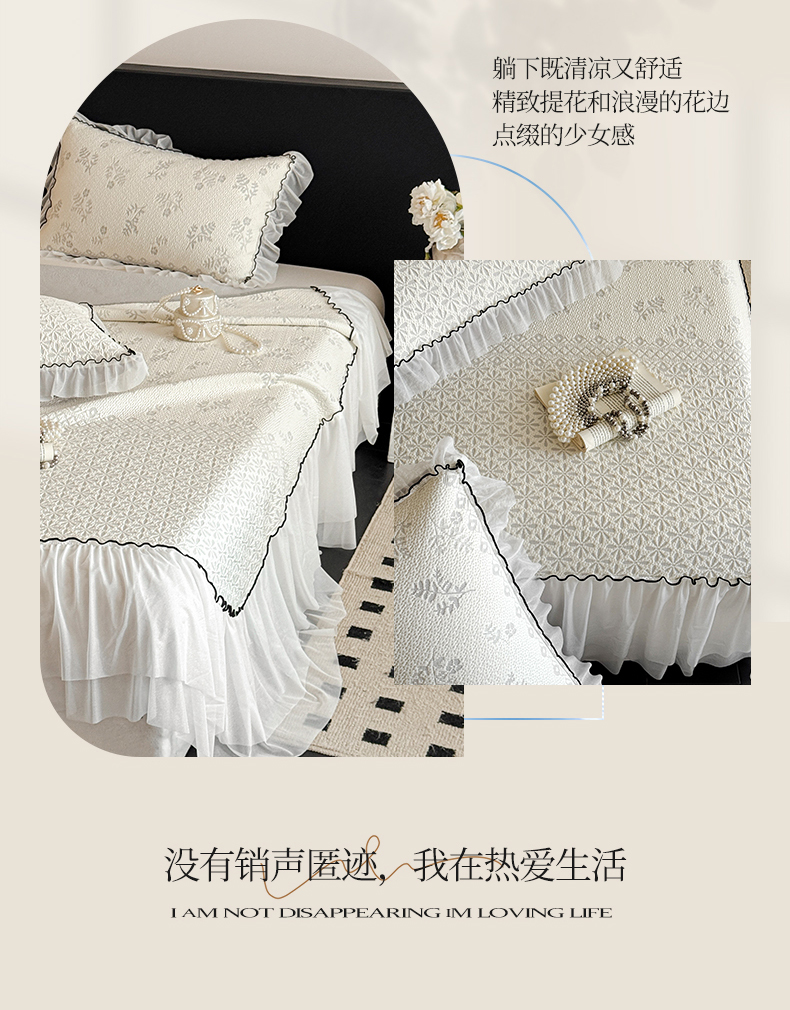 当前位置: 91家纺网 > 商品网购 > 床上用品 > 凉席 > 羚羊语家纺 2026新款韩式PE提花凉泡泡席床裙款中分子【凉感值>2.0】花边乙纶冰豆豆夏季凉感冰丝软席三件套 白月光-萱草(配洗护袋)