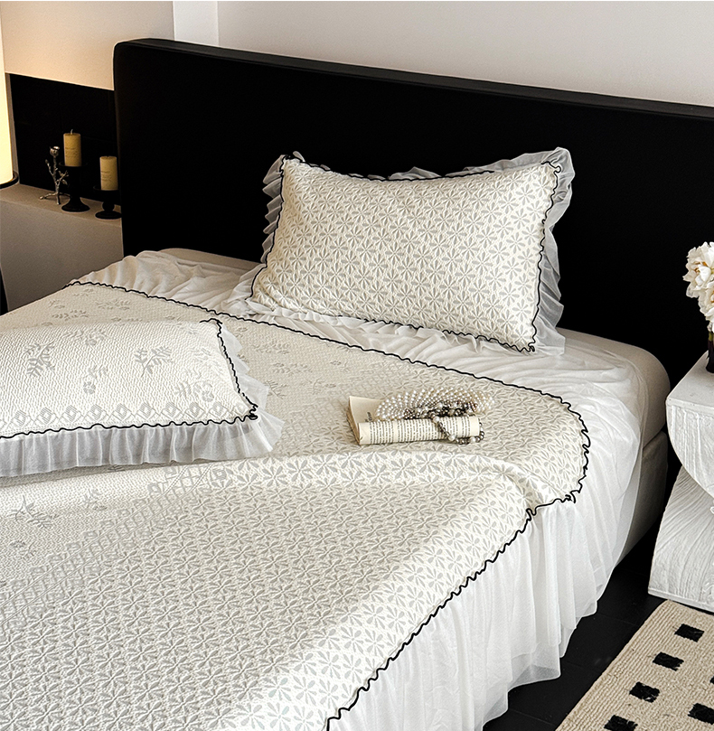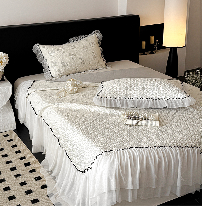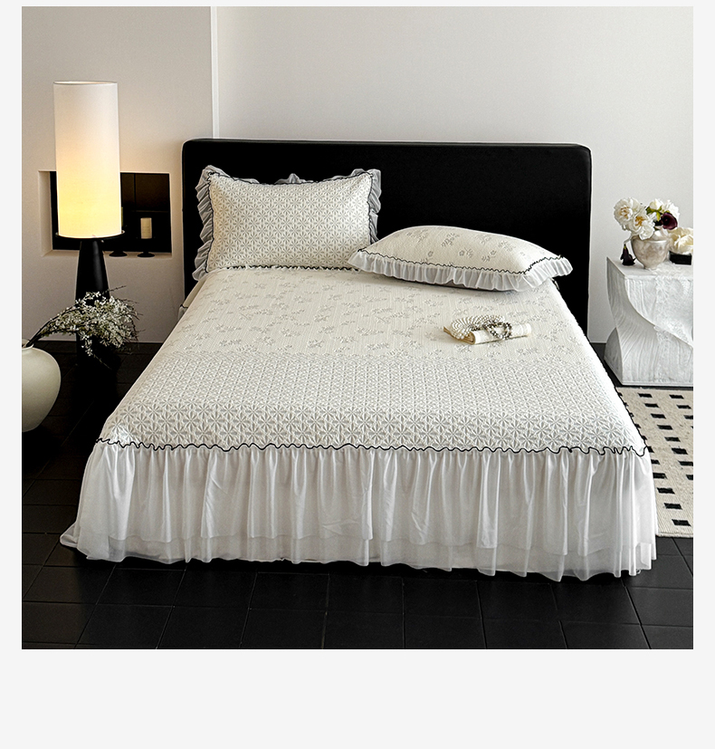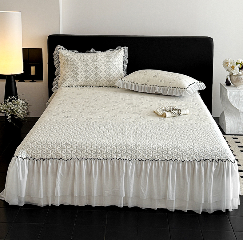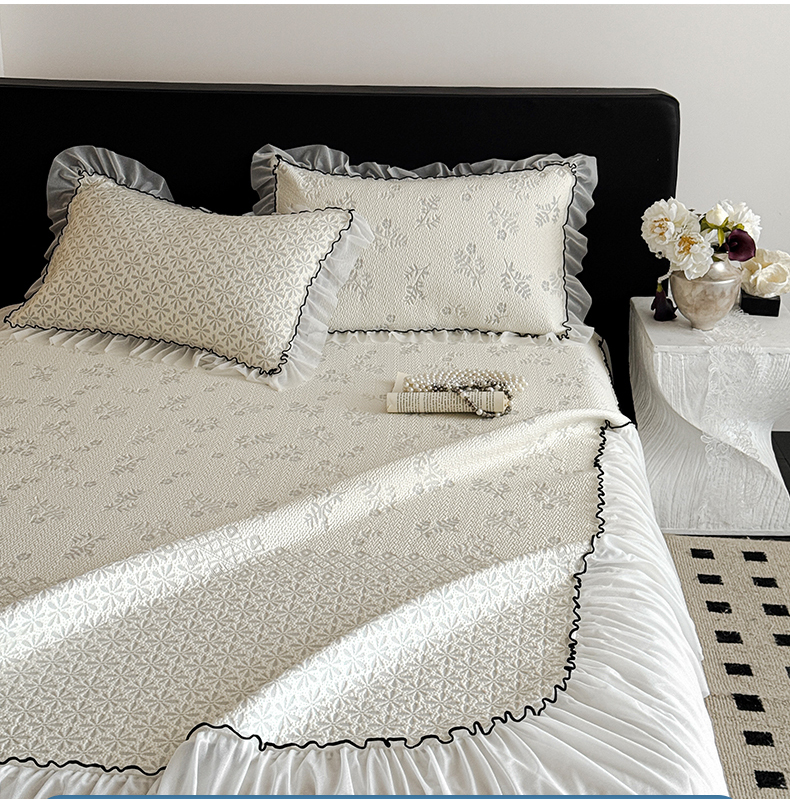 当前位置: 91家纺网 > 商品网购 > 床上用品 > 凉席 > 羚羊语家纺 2026新款韩式PE提花凉泡泡席床裙款中分子【凉感值>2.0】花边乙纶冰豆豆夏季凉感冰丝软席三件套 白月光-萱草(配洗护袋)
