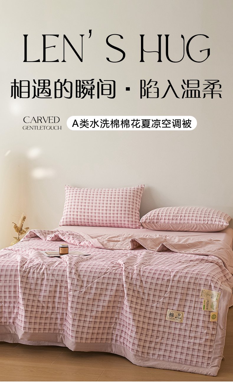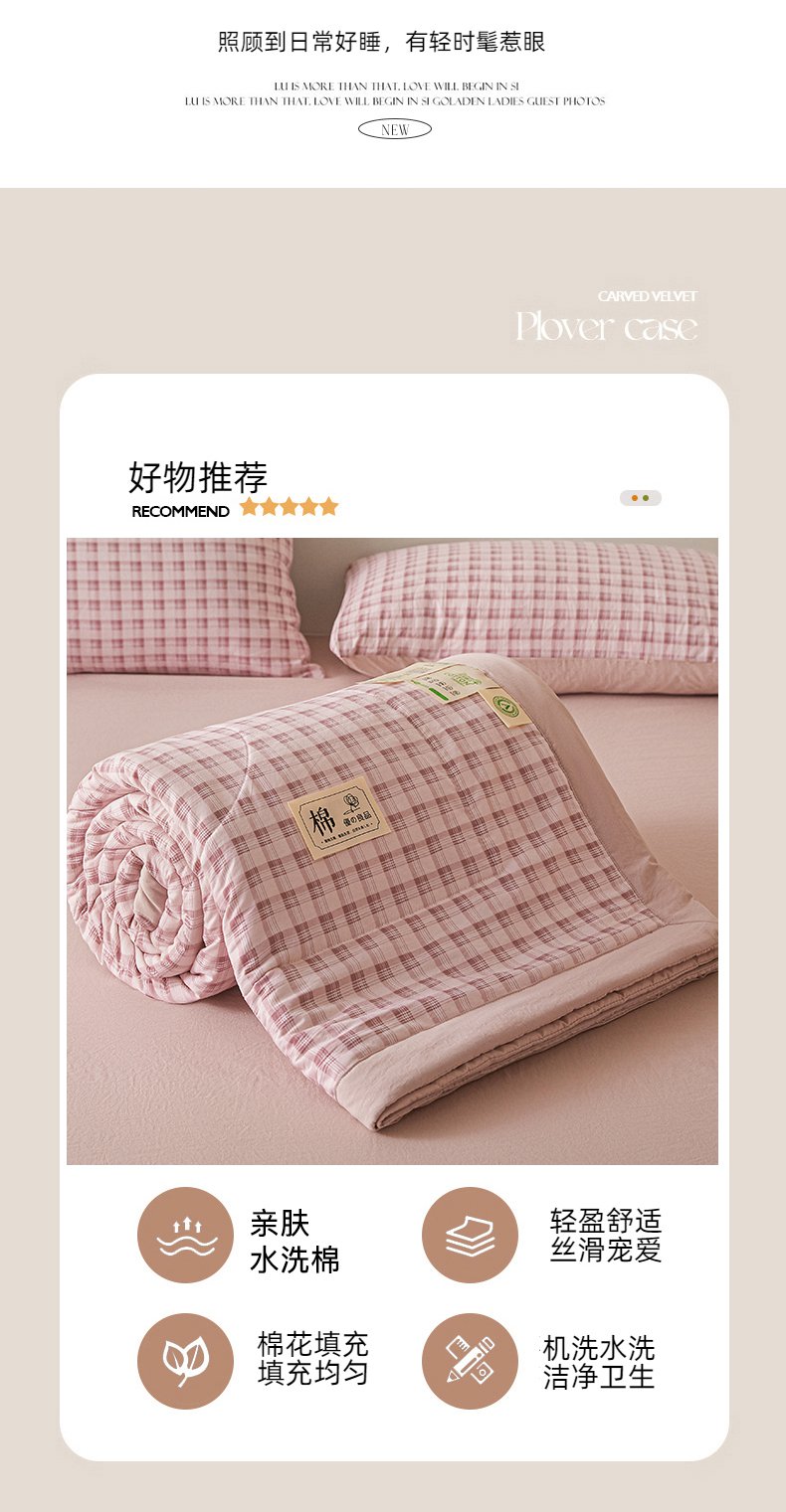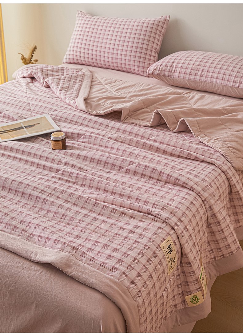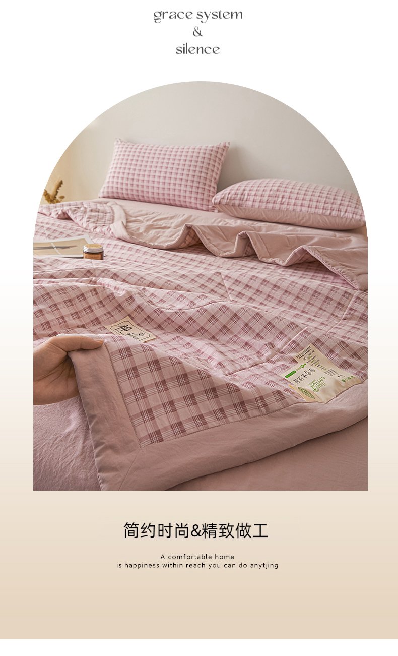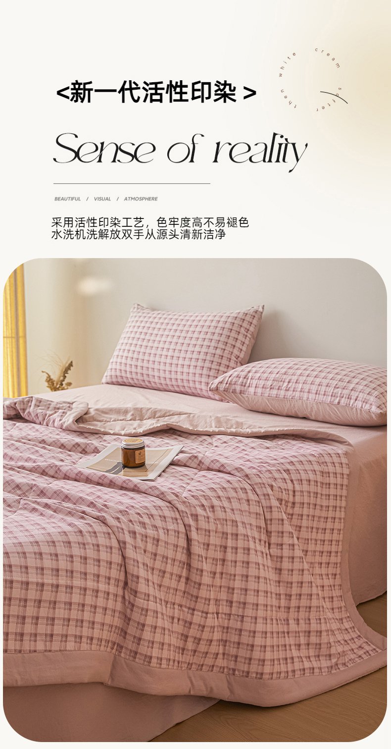 商品名称:寐眠 2026新款A类水洗棉棉花夏凉空调被 粉雾小格
